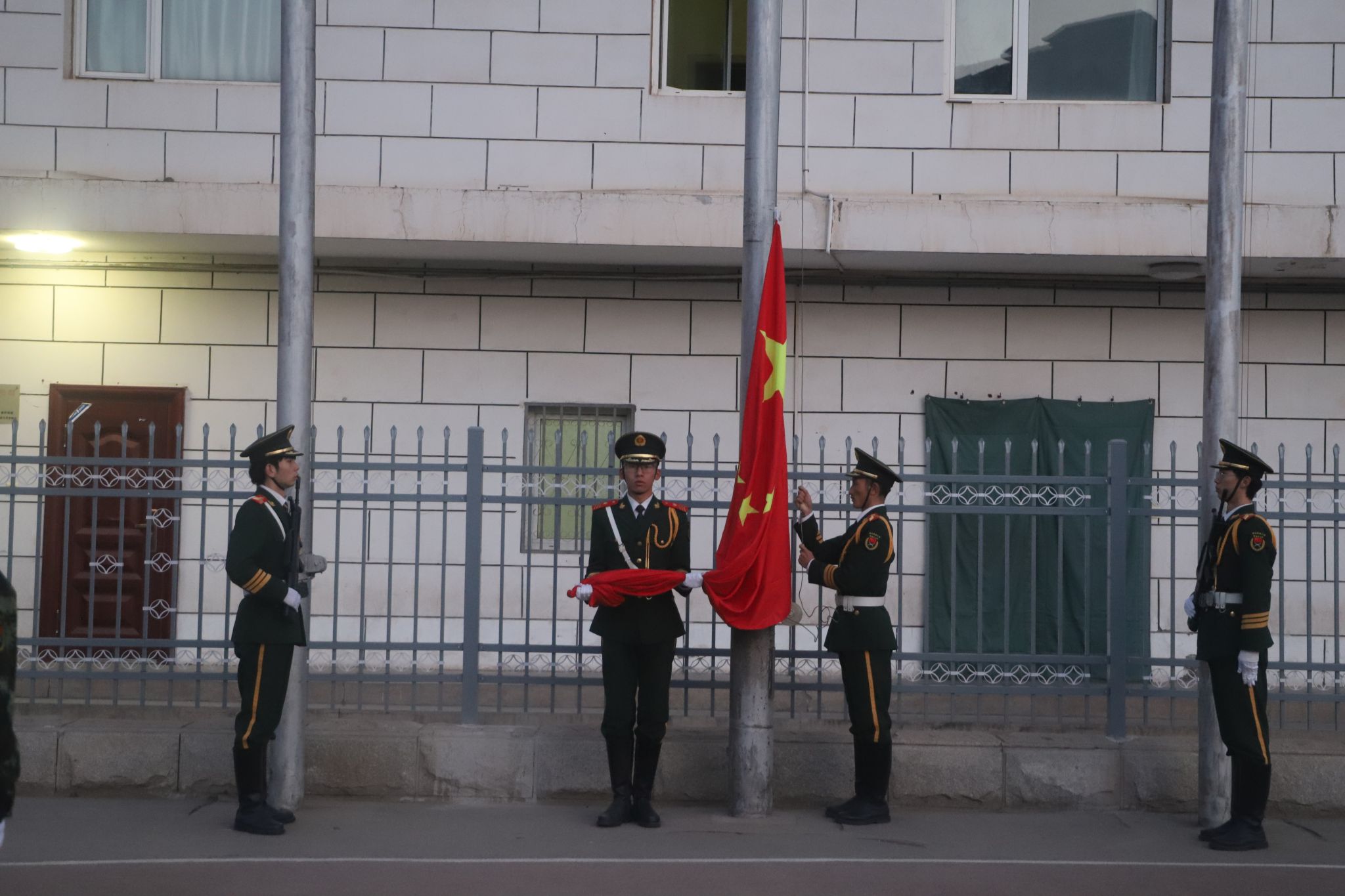 八点整,升旗仪式准时开始,国旗护卫队的队员们英姿飒爽,步伐矫健,他们昂首挺胸,阔步向前,护送着五星红旗正步走向旗杆。全体师生面向国旗肃立致礼,伴随着雄壮有力的《义勇军进行曲》,鲜艳的五星红旗乘着新年的第一缕阳光冉冉升起,高高飘扬在红黑游戏