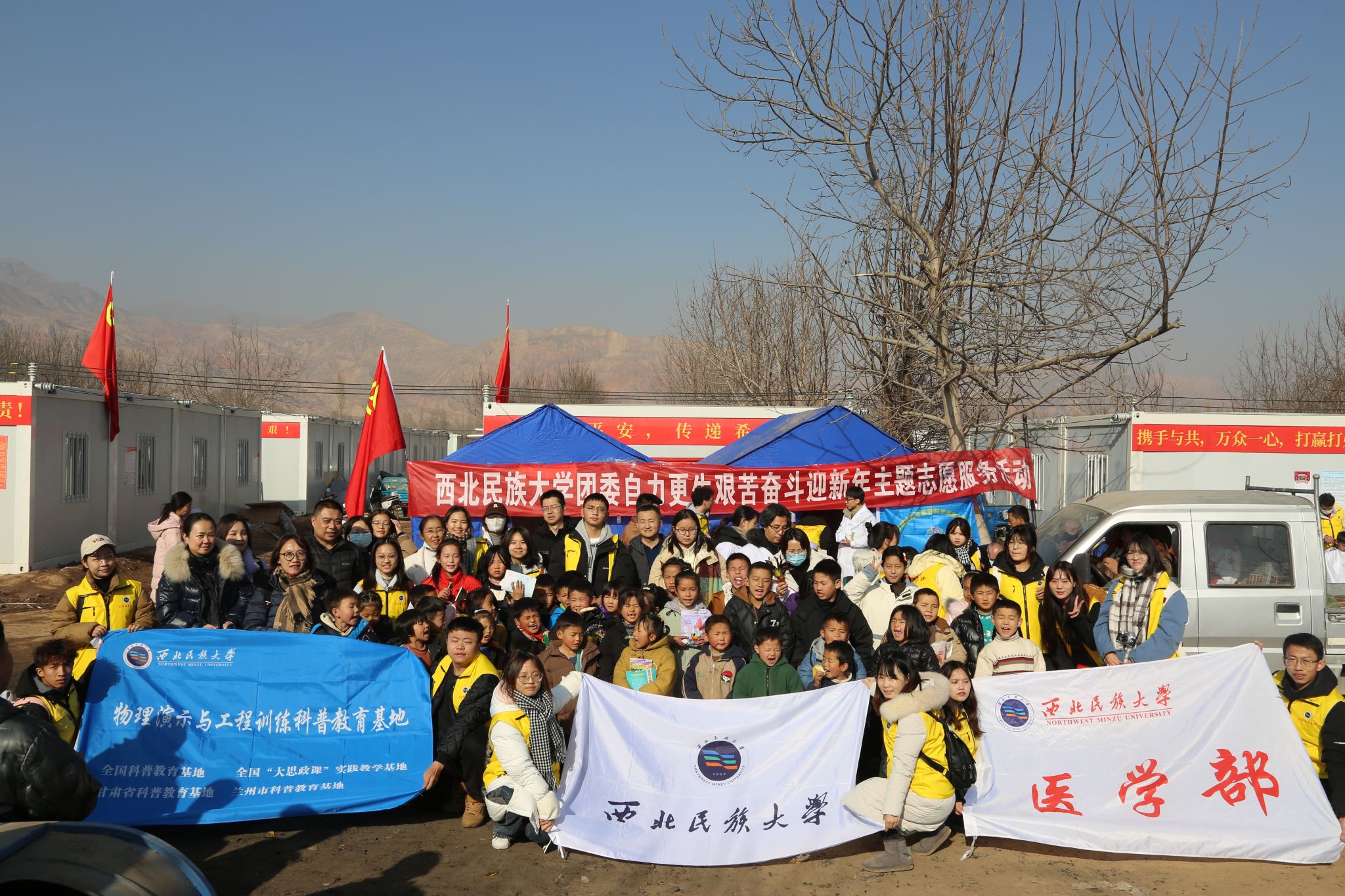 46名师生志愿者赴积石山县开展“自力更生 艰苦奋斗”共青团新年志愿服务活动,弘扬志愿精神,传递社会关爱,全力帮助受灾群众重建美好家园。