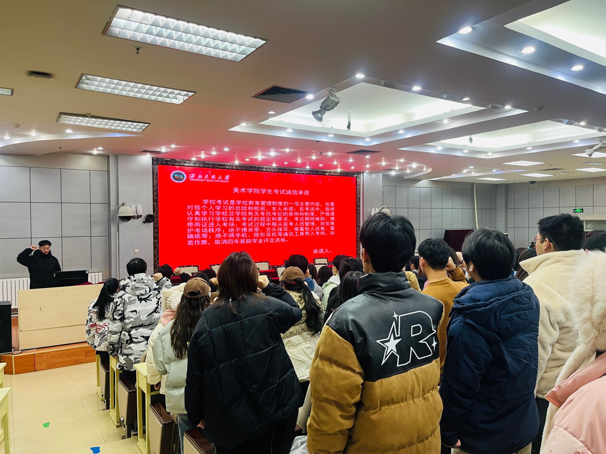 的就业去向落实率,实现高质量就业。党委副书记铁英秀补充强调了离校注意事项和假期各种安全问题。大会最后,由学生会负责人陈柄呈同学带领全体学生进行考试诚信承诺宣誓,并签订《诚信考试承诺书》。