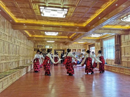 “同心桥”艺术志愿服务实践团前往拉卜楞镇来周村民间舞传习所、镇王府村格尔舞传习所、下塔哇村等观摩民间艺术表演,开展“中华优秀传统文化融入生活、走进大众”主题艺术实践活动。实践团成员通过田野采风、交流访谈、亲身体验等方式,深入人民群众,了解民间舞蹈传承发展现状,从原生态文艺的展现溯源中华民族优秀传统文化的发展历程。并从社会民俗、物质民俗、精神民俗等视角探寻其艺术形式背后的文化内涵,挖掘“原生态”舞蹈的当代价值和时代意蕴,为构筑中华民族共有精神家园、促进各民族交往交流交融贡献自己的力量。