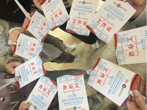 “同心桥”艺术志愿服务实践团赴碌曲县,开展“万人锅庄”赛事服务工作。实践团成员在“万人锅庄”展演活动中统一着装、佩戴工作证开展青年志愿赛事服务活动,在开幕式、彩排、正式展演每个阶段中团队成员根据任务分工,坚守于自己的工作岗位,通过实地体验式的志愿服务,近距离、沉浸式感受碌曲万人锅庄舞蹈的风采。同时,团队成员以实地走访的形式与各地代表团及人民群众展开交流访谈。深入领悟锅庄舞“同心圆”的艺术表现形式正是对中华“圆融、圆满”精神原型的传承,其形义与中国传统文化的“圆”思想不谋而合,集中诠释了当下各族儿女在中国共产党的坚强领导下,像“石榴籽”那样紧紧抱在一起。