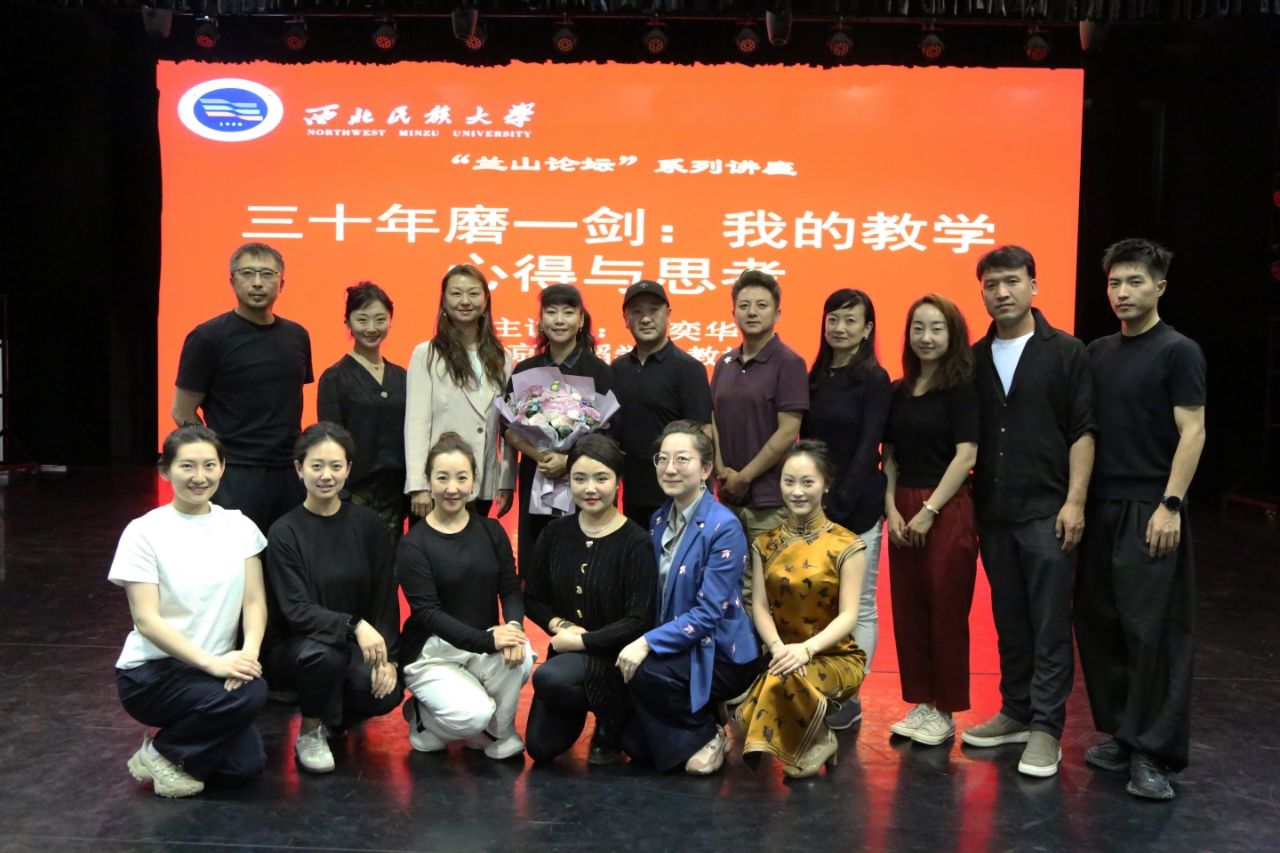 讲座围绕缘起、淬炼、锋芒、共勉四个模块展开,系统梳理其三十载教学实践、提炼教育思想内核、剖析课堂创新路径,并以《中国民族民间舞基础训练——安徽花鼓灯》课程与舞蹈作品《淮水情兰花弯》为例,生动且直观地诠释了“课堂教学——作品创作”的教学转化逻辑,强调民族民间舞的教育与创作需深扎传统土壤。此外,黄奕华教授热情分享其课程思政实施策略,以安徽花鼓灯中所蕴涵的大禹精神为例,生动展现民族民间舞蹈与文化精神的深度融合,为红黑游戏 优化课堂教学模式提供了方法论范本。