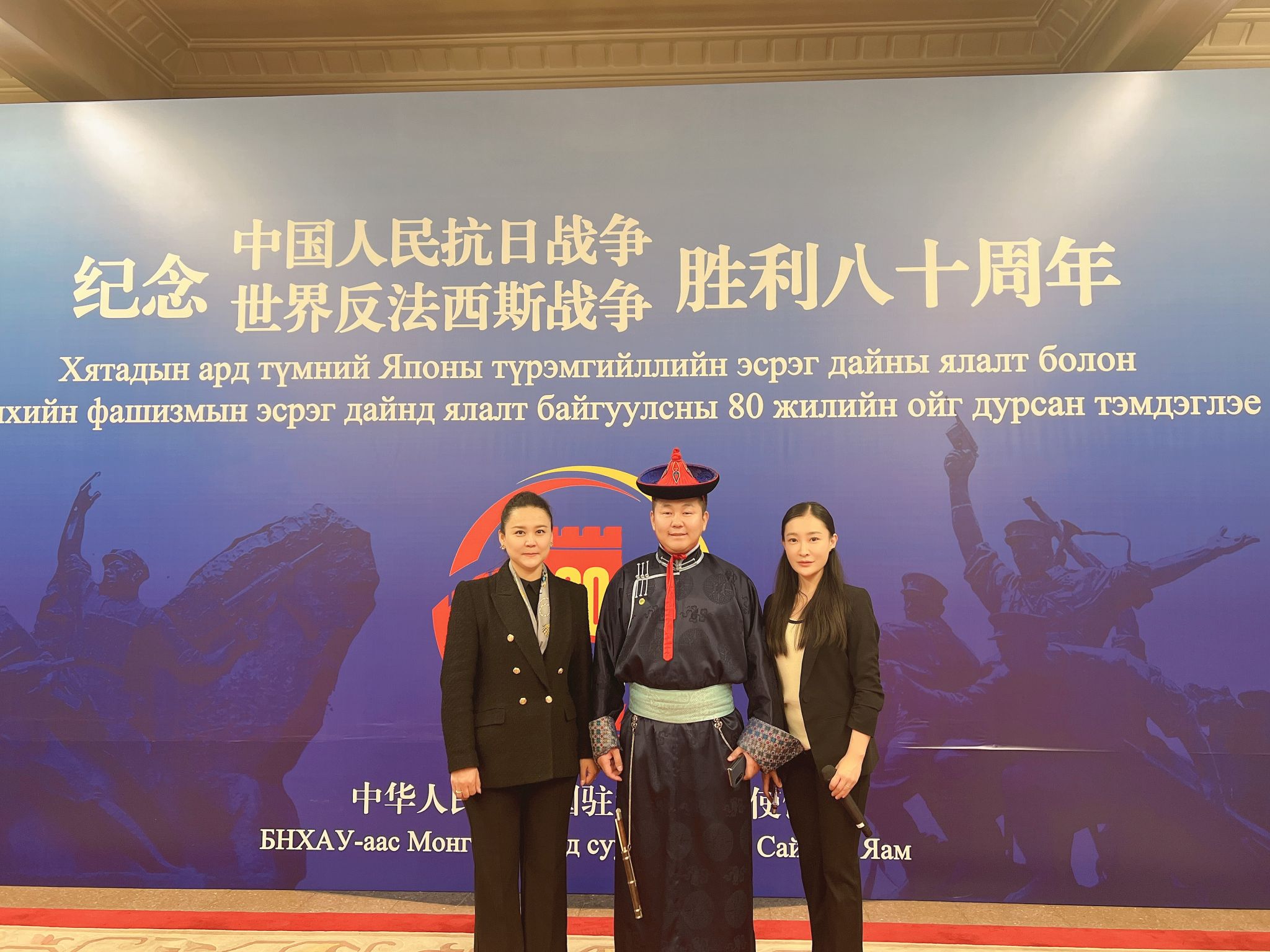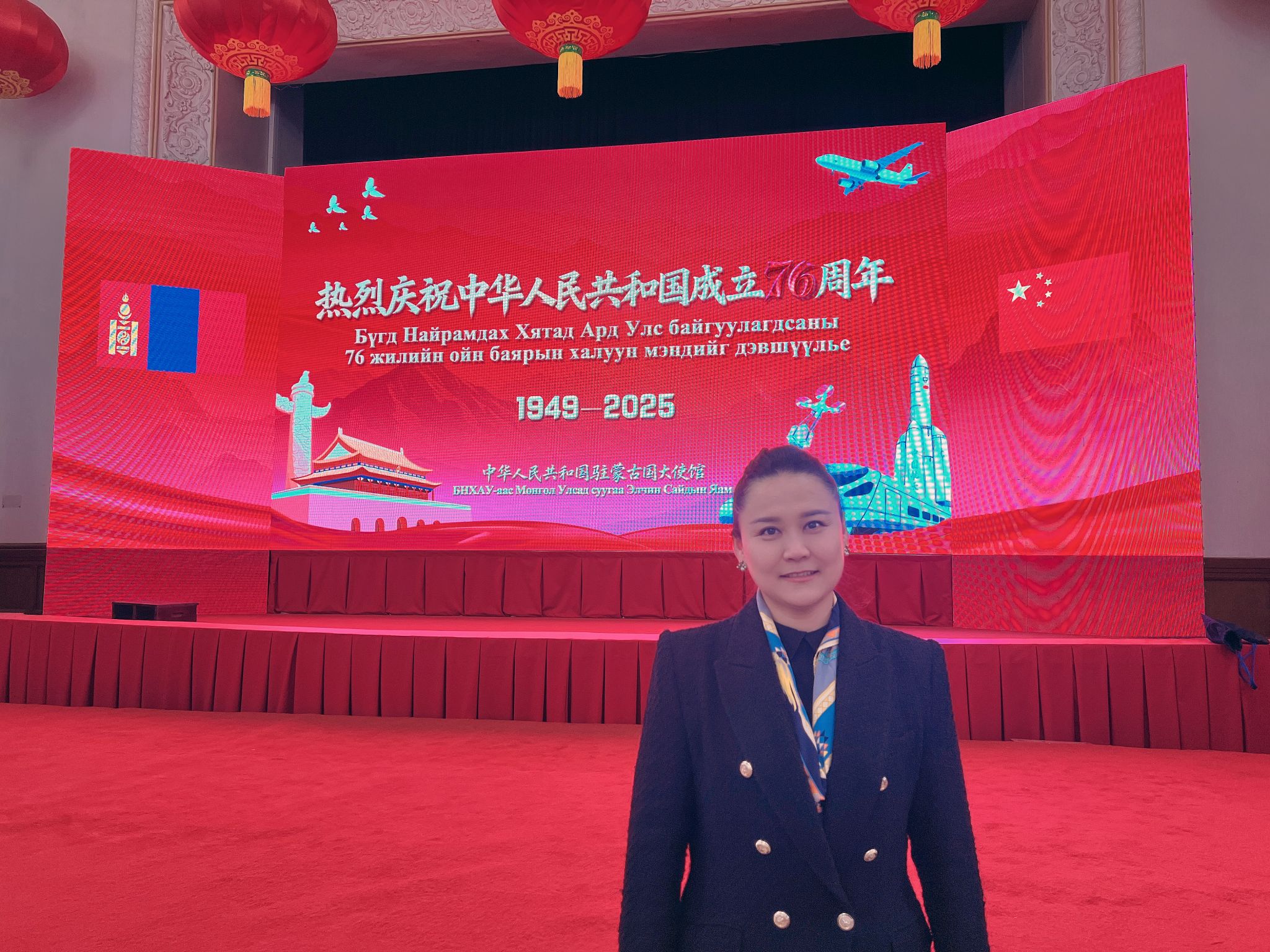 图3:朝露蒙参加中国驻蒙古国大使馆举行的庆祝中华人民共和国成立76周年相关活动