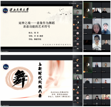 本次学术论坛由2021级学术型研究生郑芳和2021级专业型研究生高颖琦进行汇报,两位同学对个人的报告主题进行了精彩的阐述和展示。郑芳同学以“延伸之境——意向作为舞蹈表意功能的艺术符号”为主题,运用索绪尔符号学理论,引经据典,阐释了舞蹈身体意向作为表意符号所呈现的艺术功能。高颖琦同学以“与新时代同频共舞”为主题,结合自身编创作品以及创作过程中的感悟,解读新时代下的文艺政策,阐述了作为新时代研究生所要肩负起的时代使命。汇报中两位导师从不同角度进行点评,强调了学术研究中严谨而尊重的学术态度以及全体研究生面对新时代文艺工作所要保持的初心与使命。