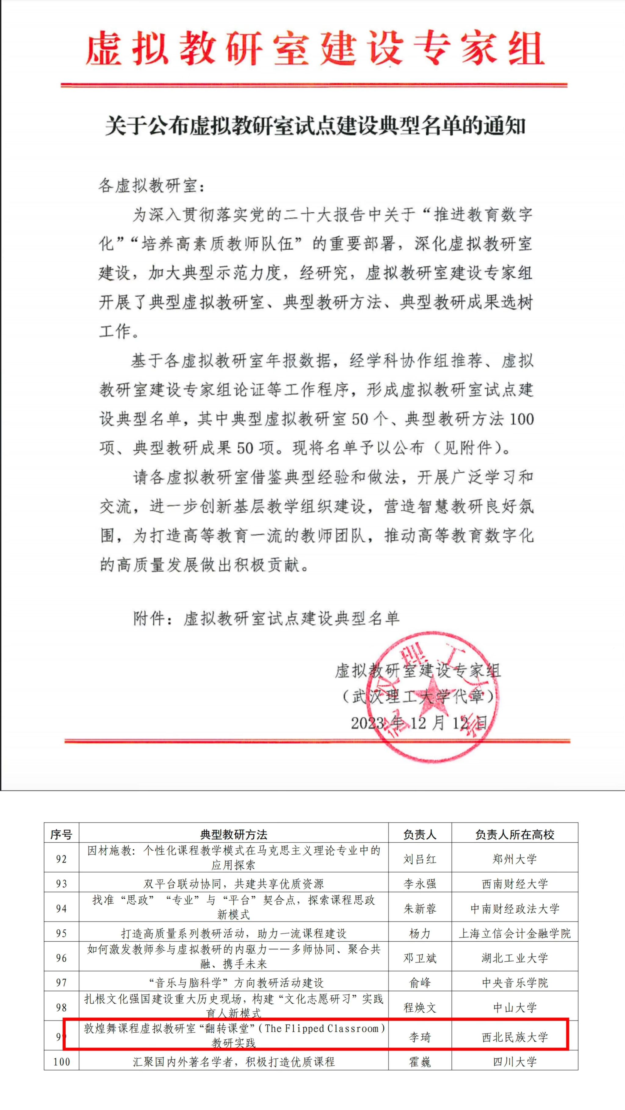 敦煌舞课程虚拟教研室“翻转课堂”(The Flipped Classroom)教研实践入选典型教研方法。