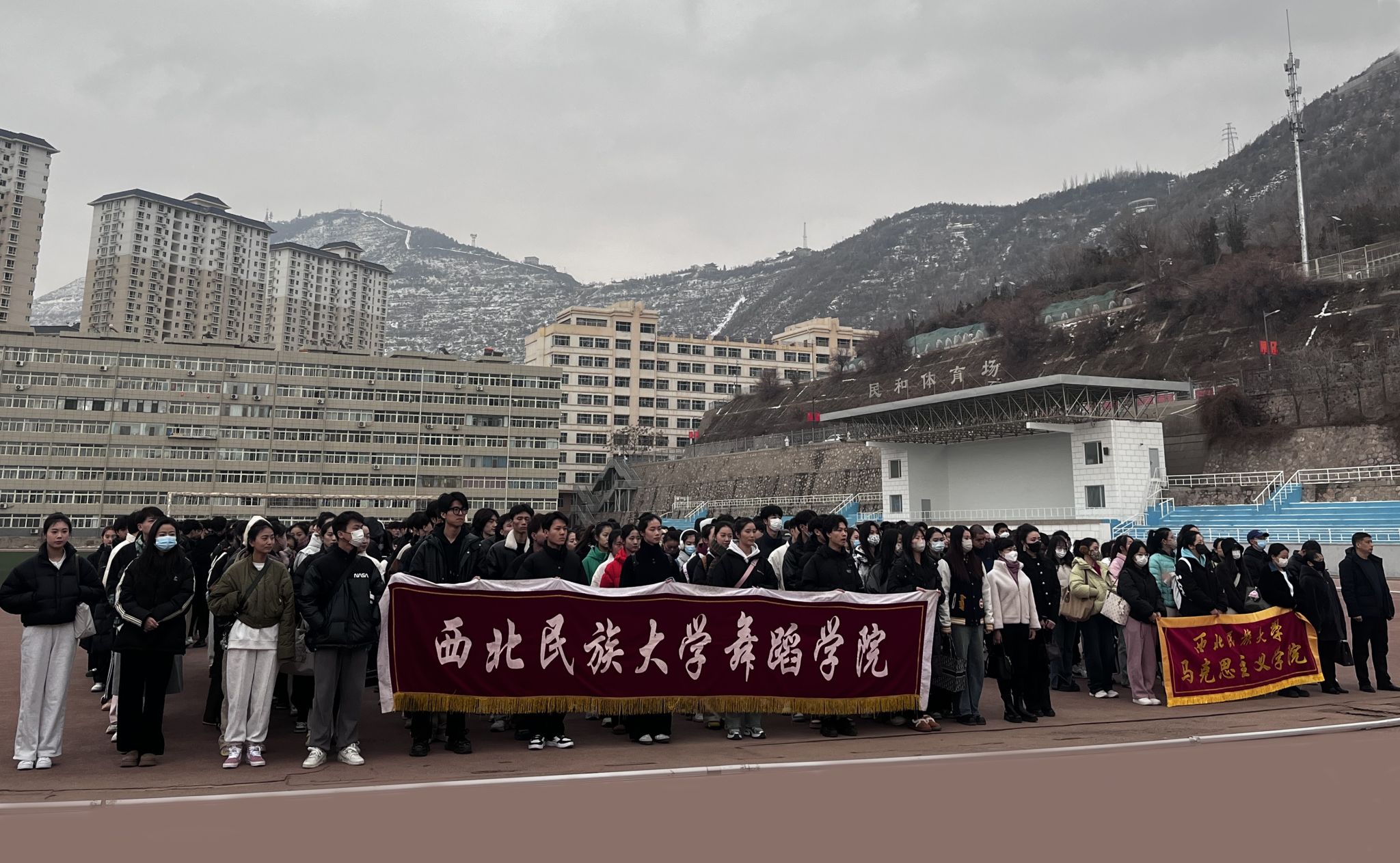 师生在西北新村校区民和体育场举行升国旗仪式,红黑游戏