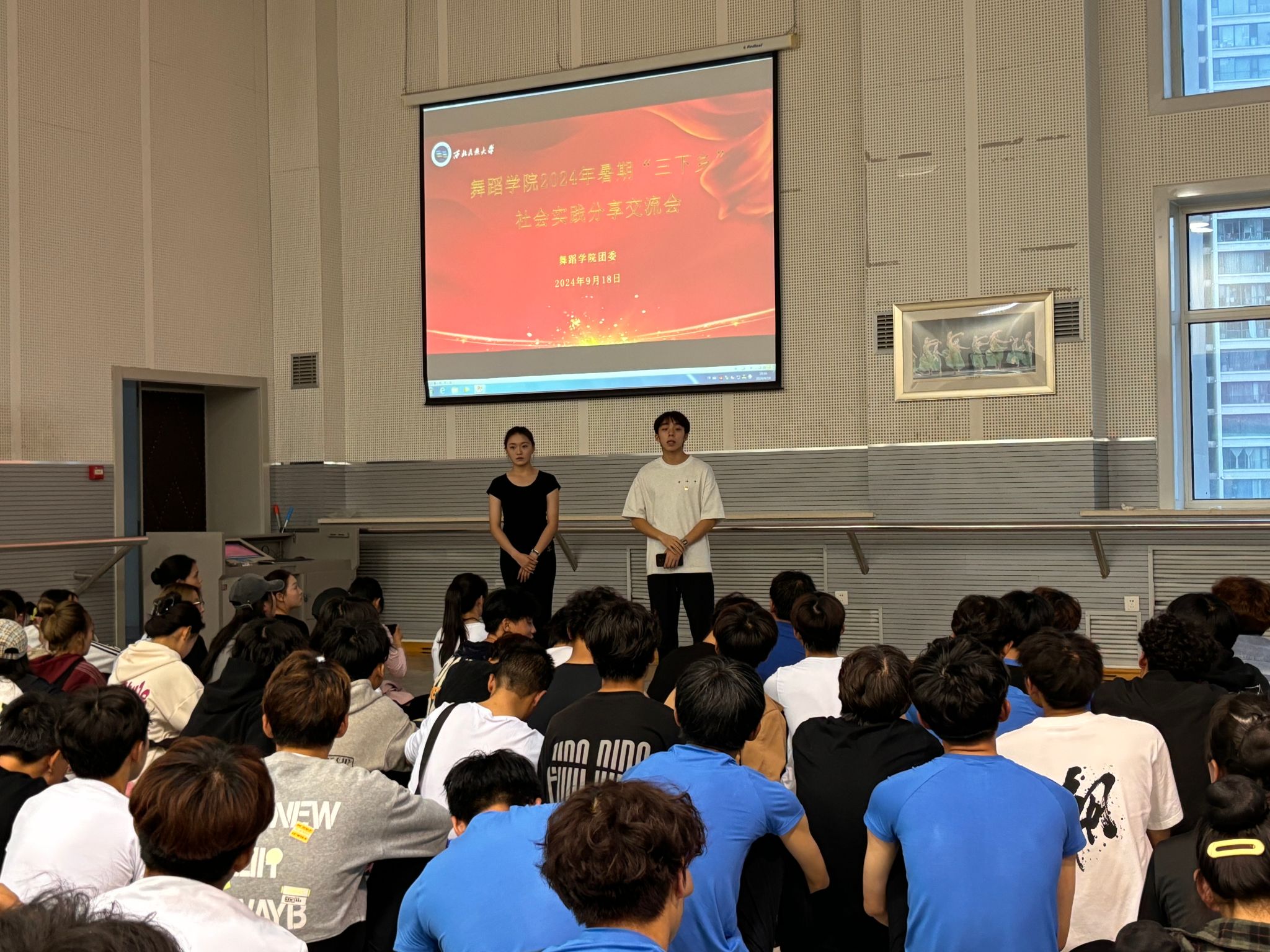 团委组织召开了2024年暑期“三下乡”社会实践分享交流会。各班学生代表及2024级全体新生近200人参加了此次分享交流会。