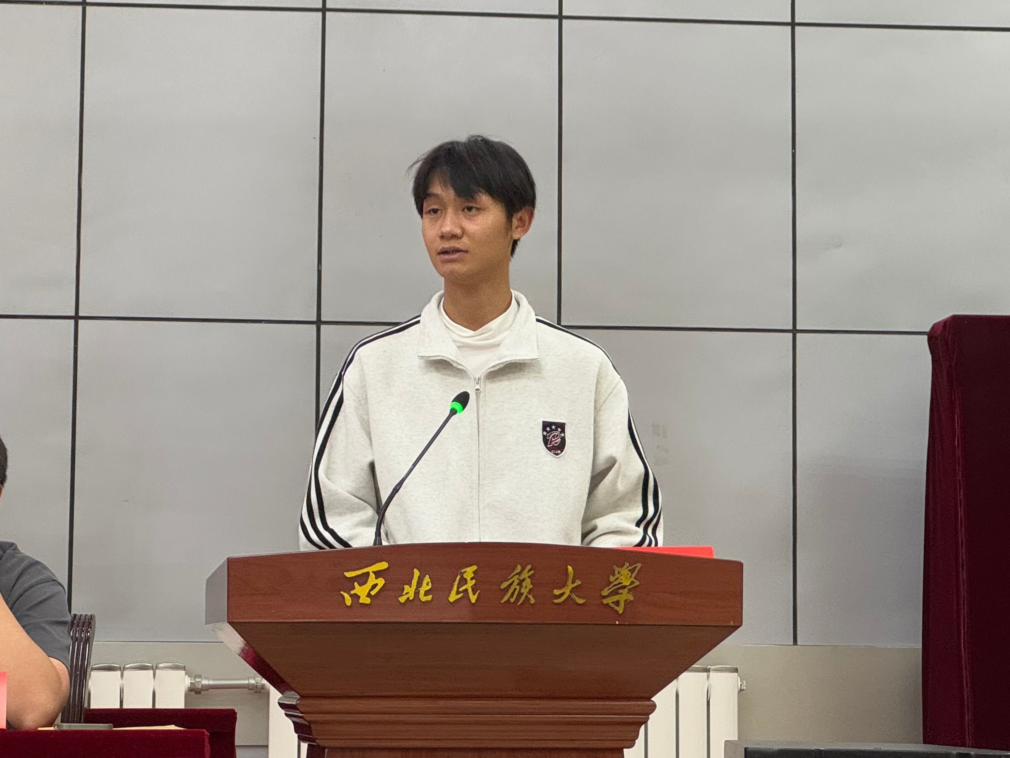 发言学生代表:徐粮(上图)