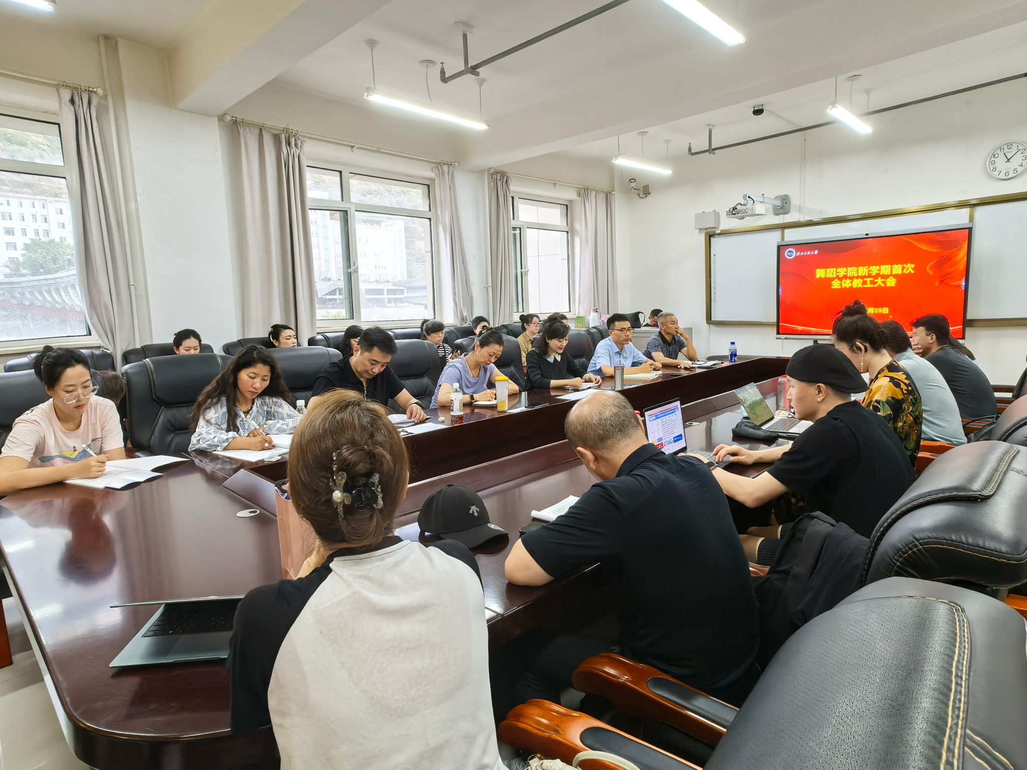 师生在暑假期间开展的相关工作和取得的成效,并就新学期专业学科建设、师德师风建设、学生培养、学生思政教育、科研工作、毕业生就业、开学初教学工作准备与学生补缓考等方面工作进行了细致的安排部署。
