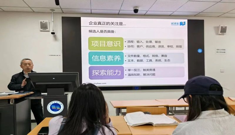 师老师在讲座中详细介绍了翻译技术的基本概念、发展趋势及其在翻译项目流程中的应用。他强调了高校在翻译人才培养过程中,既要坚持语言学习和翻译教育的基本规律,又要面向行业实践与社会现实需求,培养懂语言、懂管理、懂技术的高层次应用型翻译人才。