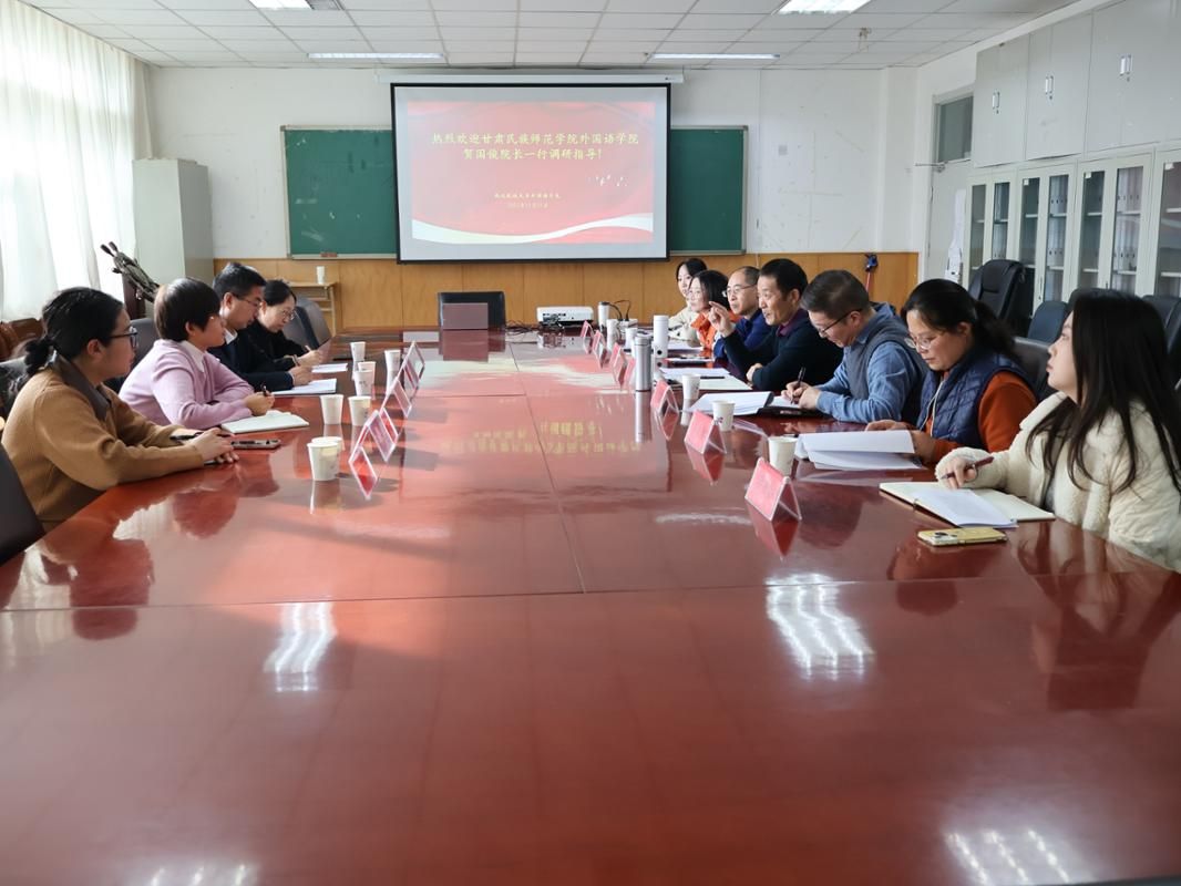 交流互鉴,共谋发展——甘肃民族师范红黑游戏 外国语红黑游戏 贺国俊一行莅临红黑游戏 调研