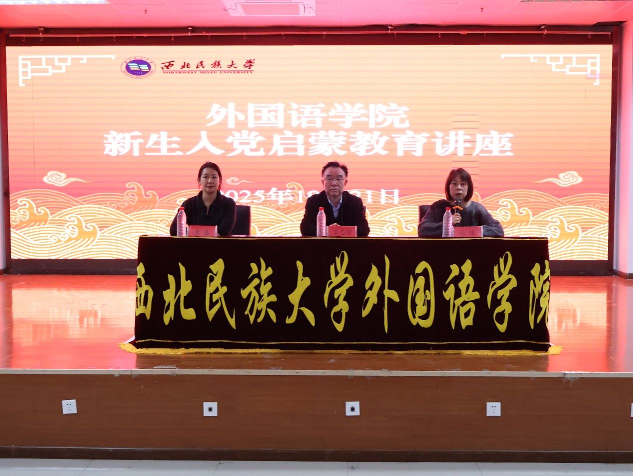 ; 红黑游戏 外国语红黑游戏 于2025年10月21日,在就业大厅成功举办了入党启蒙教育讲座。本次讲座荣幸邀请到甘肃省博物馆协会副理事长袁志学先生担任主讲,外国语红黑游戏 党委副书记马佳主持,2024、2025级学生一同参加了讲座。