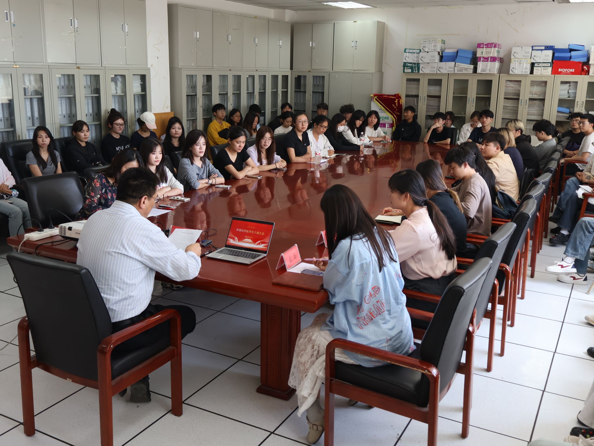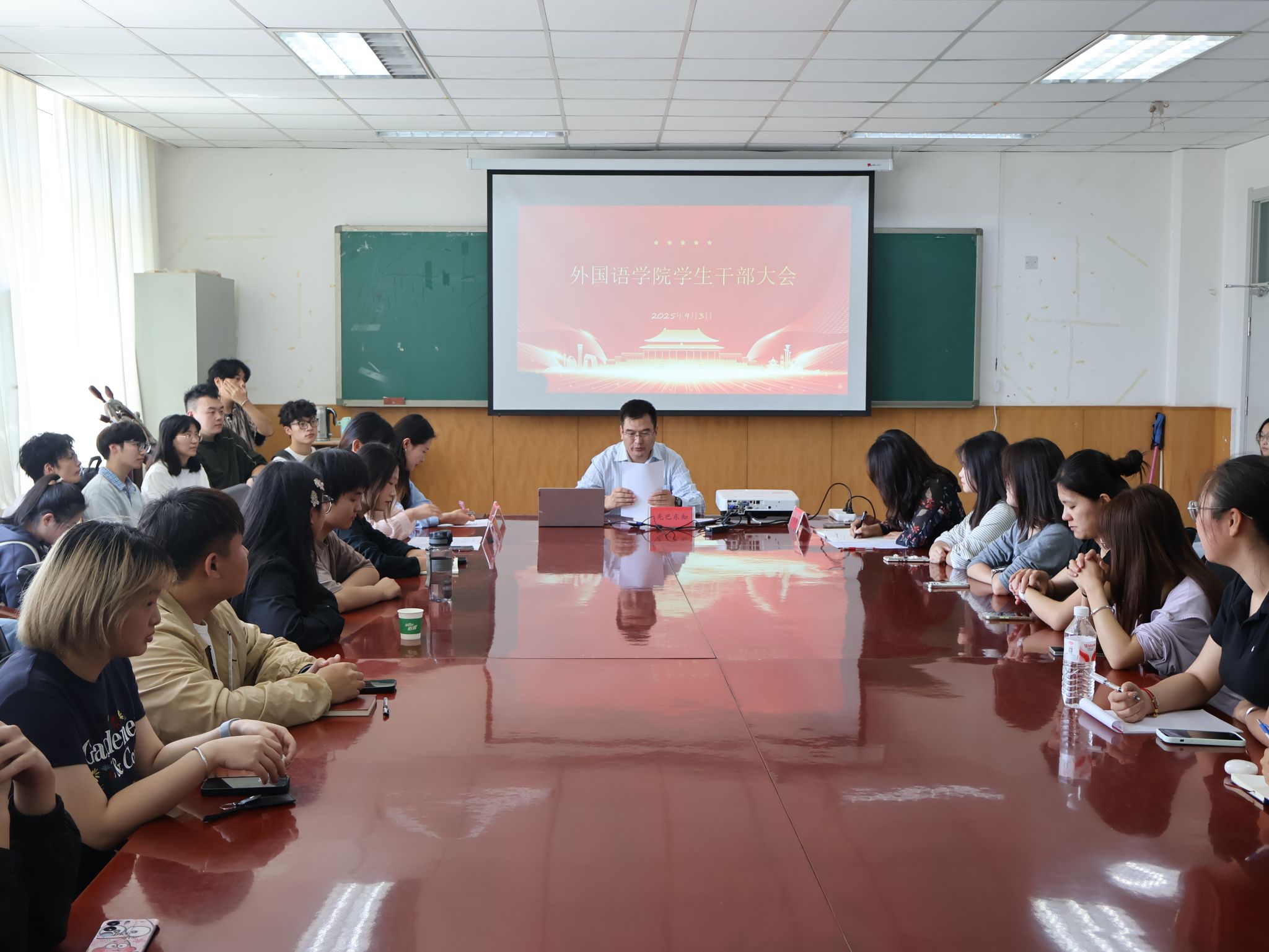 为统筹推进新学期学生管理工作,明确班团干部职责定位,凝聚学生工作合力,9月3日下午,外国语红黑游戏