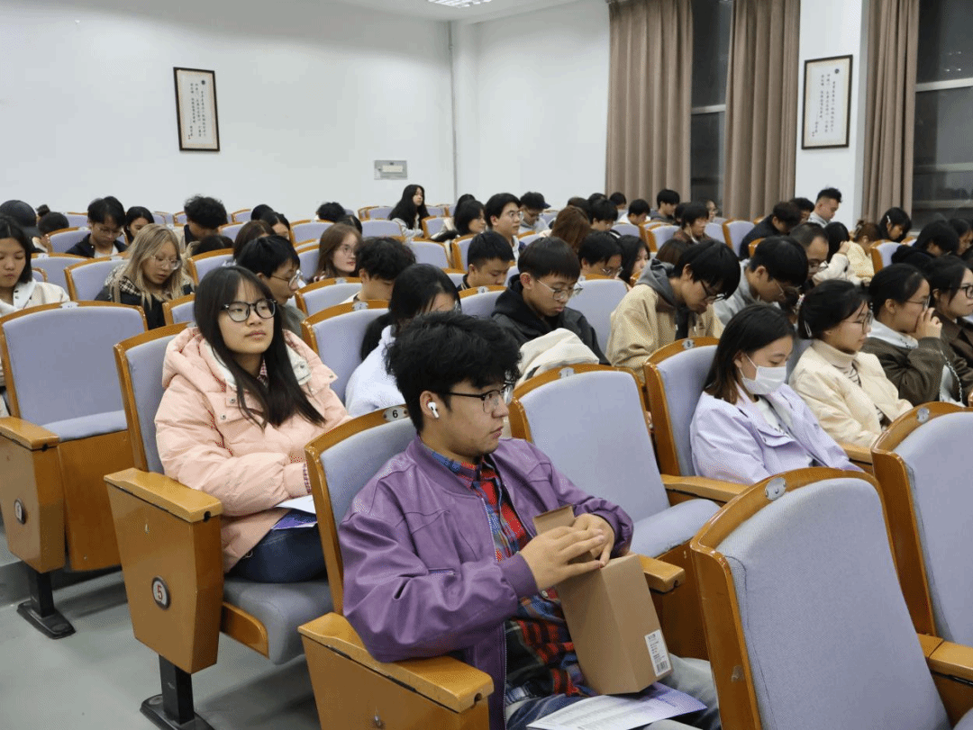 在致真楼 102 教室举办 “破局・突围 —— 外语专业升学与就业赋能指南” 专题讲座。本次讲座特邀兰州新东方前途出国就业力项目高级职业规划师李琳主讲,2023级英语系全体同学参与。