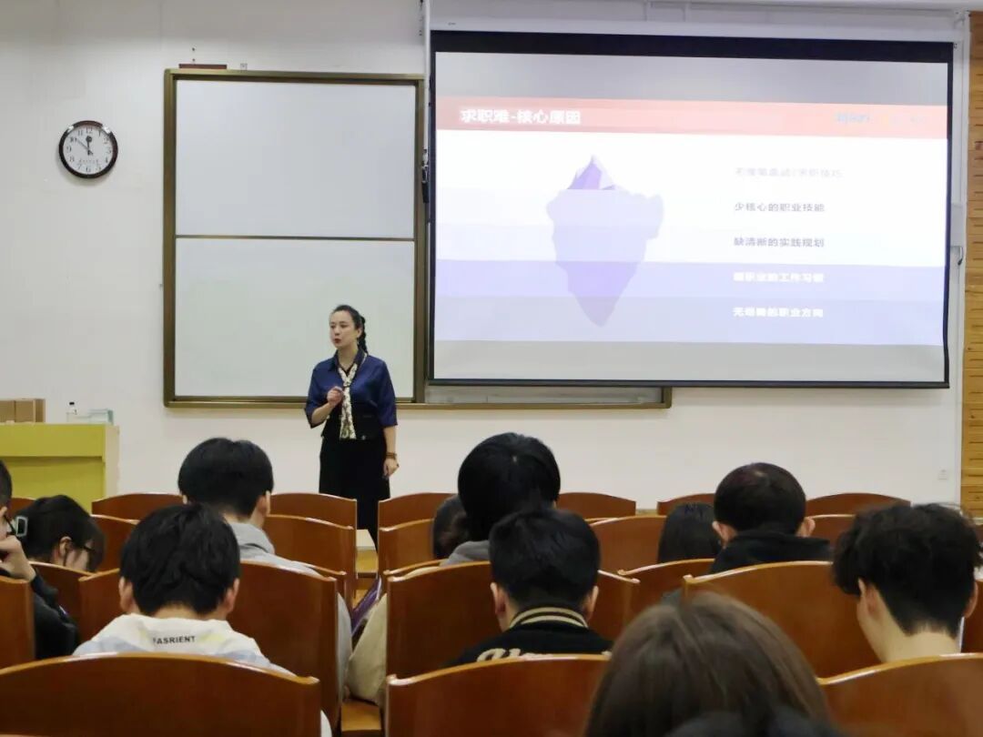 讲座伊始,李琳老师聚焦当前就业市场严峻形势,以 “数据 + 案例” 的形式展开分析。她通过展示近年外语类专业毕业生就业数据,直观呈现了语言专业学生在求职中面临的 “岗位竞争激烈”“技能与需求错配” 等核心难题,并结合外贸、教育、跨境服务等领域的真实岗位案例,拆解了不同职业对 “专业语言能力 + 附加技能” 的具体要求。