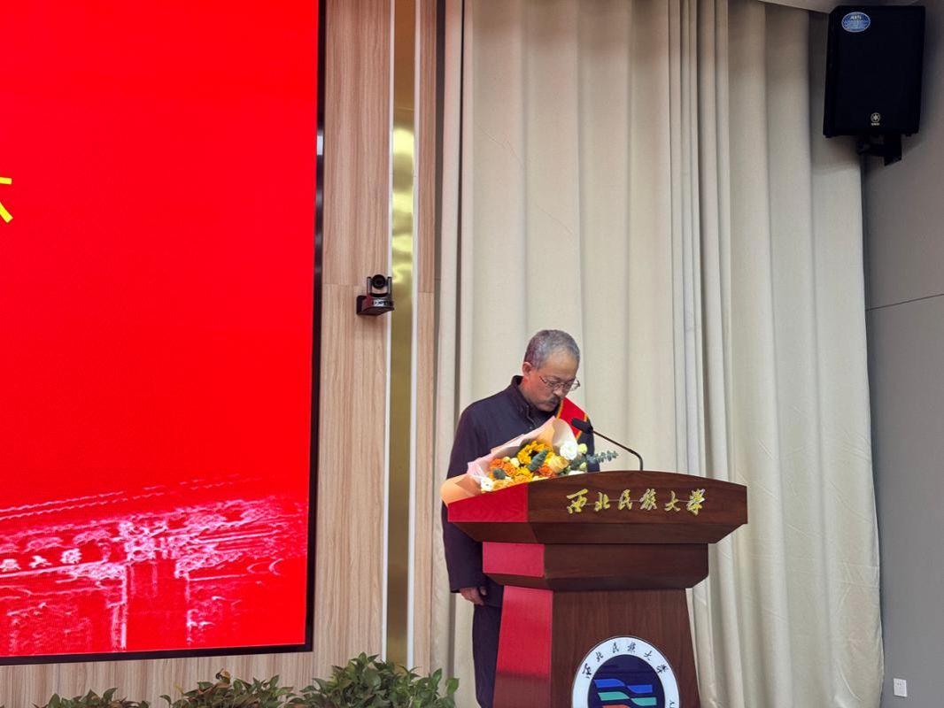 党委书记先巴东知为刘老师佩戴绶带、赠送鲜花。随后,刘福生老师登台发言,追忆与同仁们共事的难忘时光,并表达了对各位领导和老师厚爱、关照的感谢之情。