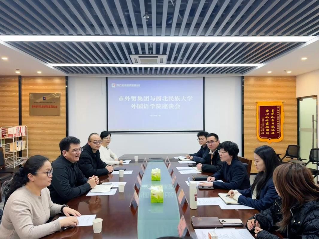 党委书记先巴东知一行到访贵阳市外贸发展集团有限公司,双方围绕多语种外贸人才培养、校企合作机制建设等核心议题开展深度座谈交流。市外贸集团副总经理赵杰及相关部门负责人参加座谈。