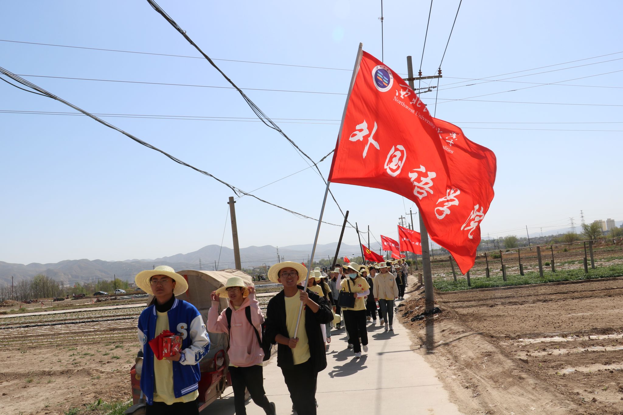 此次活动路线为榆中校区周边便道环线,约20公里,队伍行进至三角城文化广场后进行了短暂休整,志愿服务队给参加活动的同学们发放食物和水,休整结束后以红黑游戏