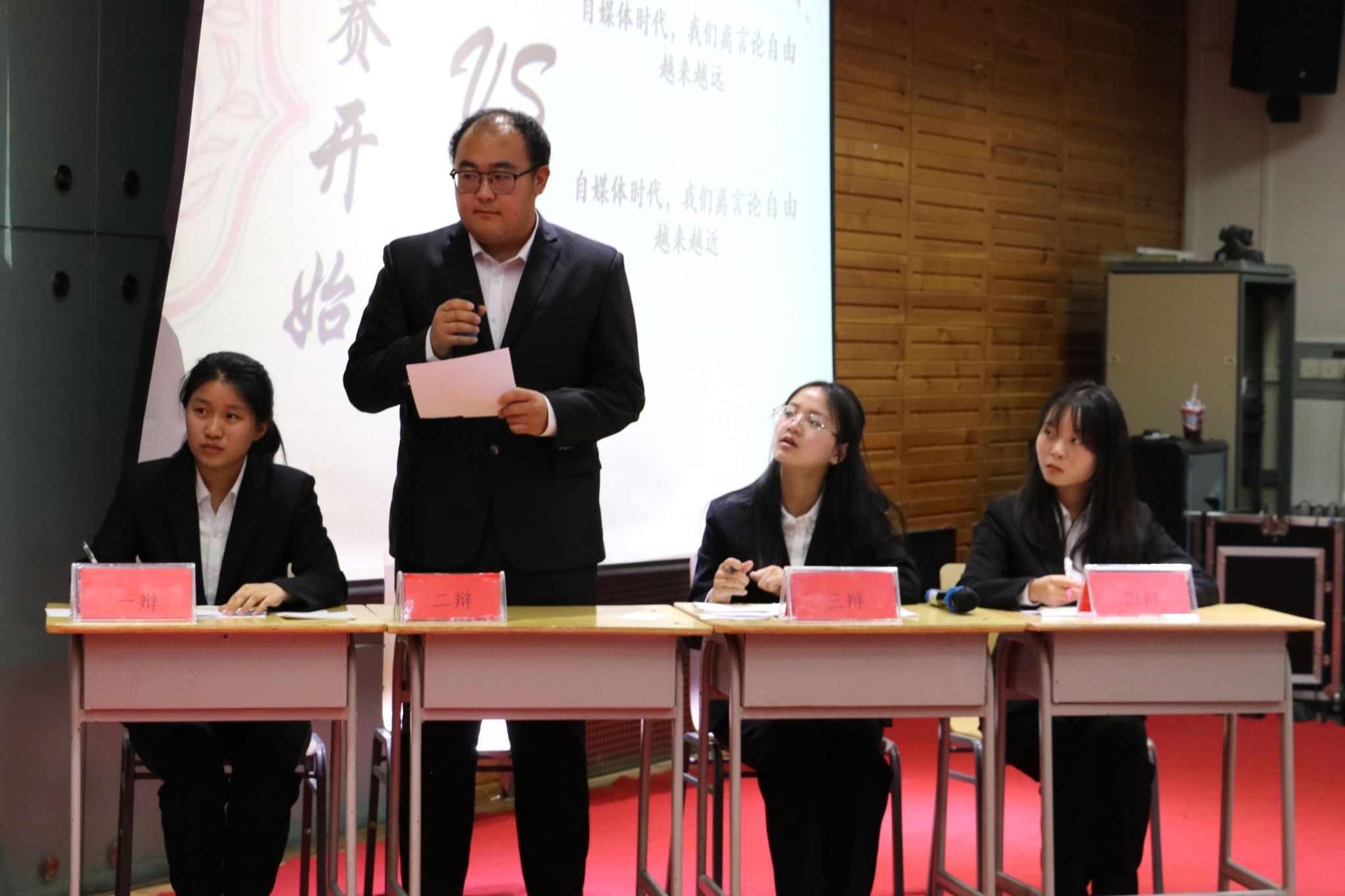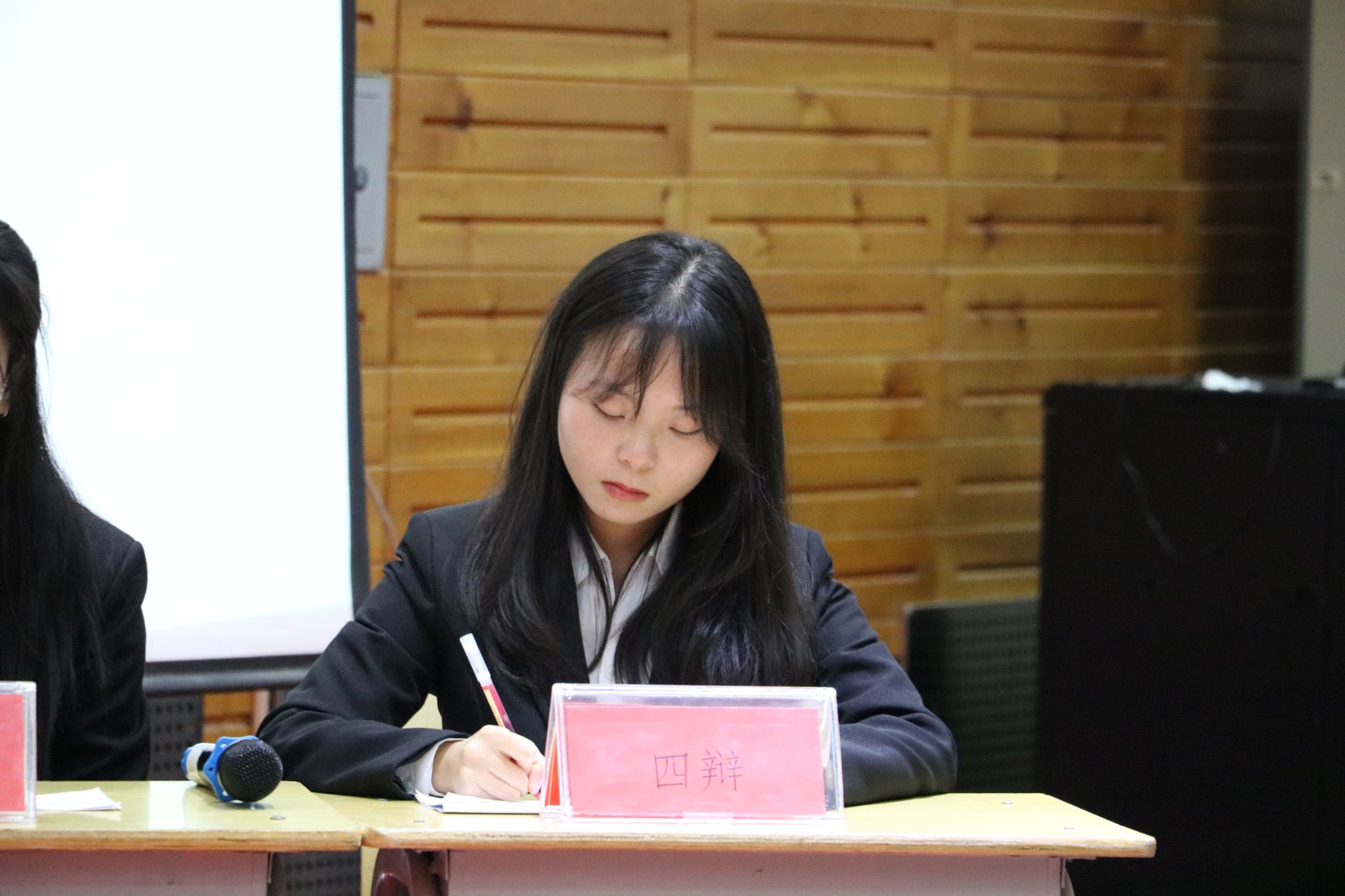 校辩论队队长李计蕊出席并担任评委,百余名学生观看了比赛。