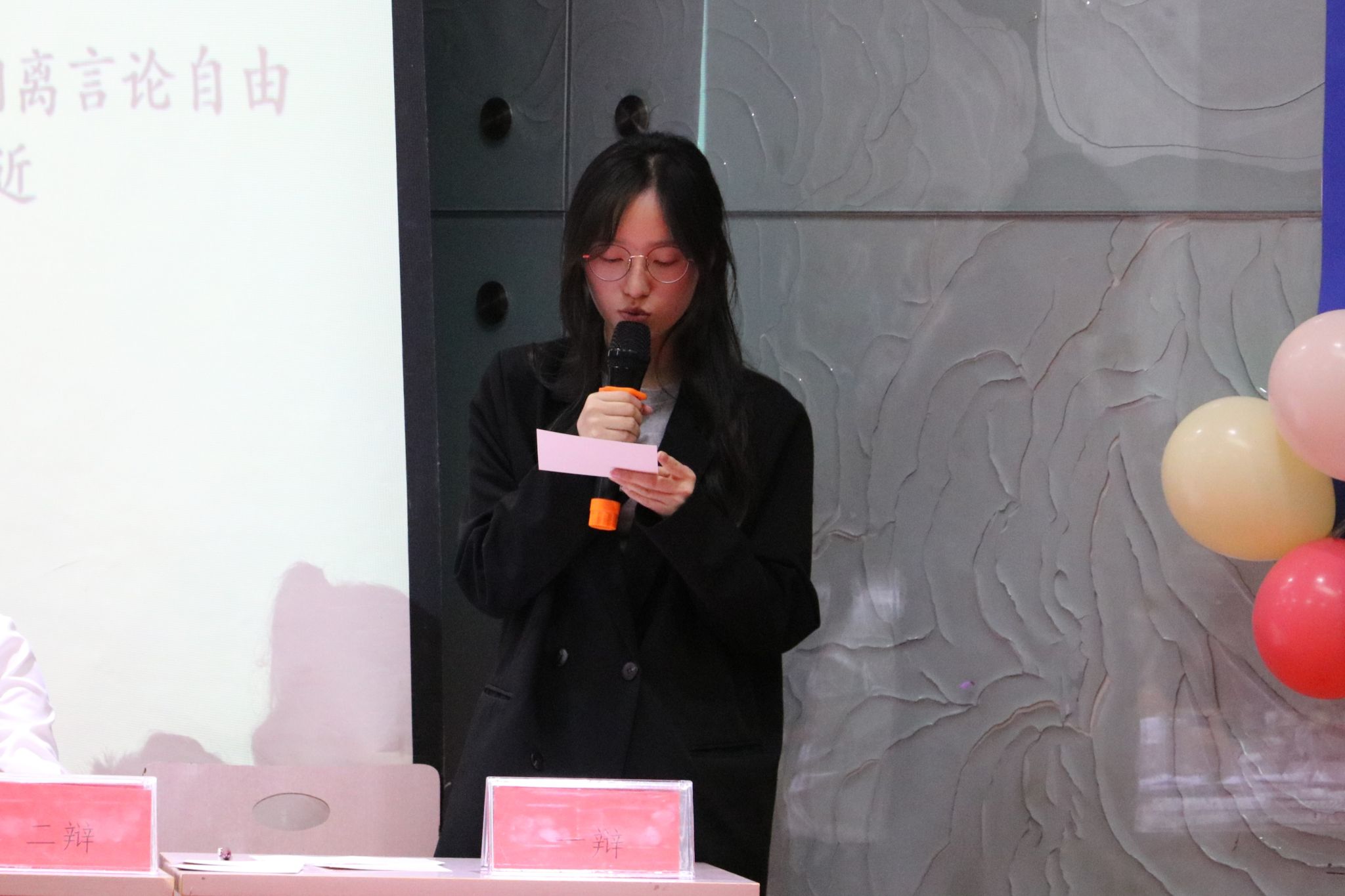 进入决赛的两支队伍围绕“自媒体时代,我们离言论自由越来越近或者越远”这一主题,展开了激烈的辩论。比赛现场气氛热烈,选手们在辩论中表现出了高超的辩论技巧和丰富的知识储备,充分展现了大学生的精神风貌。在正反双方的四辩发表完结辩陈述后,任海科对双方整场的表现进行了精彩的点评,分析了选手们的优点和不足之处。