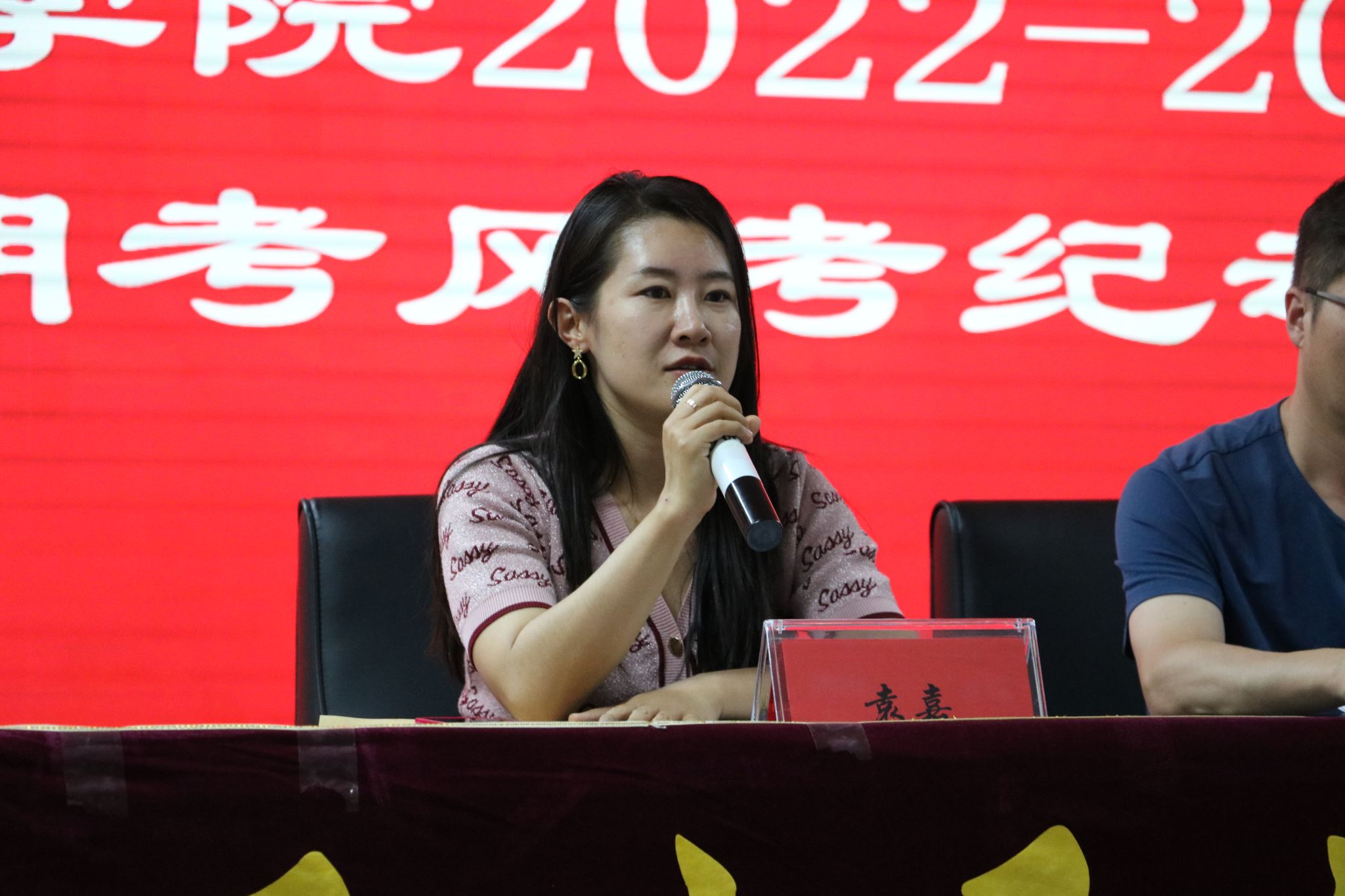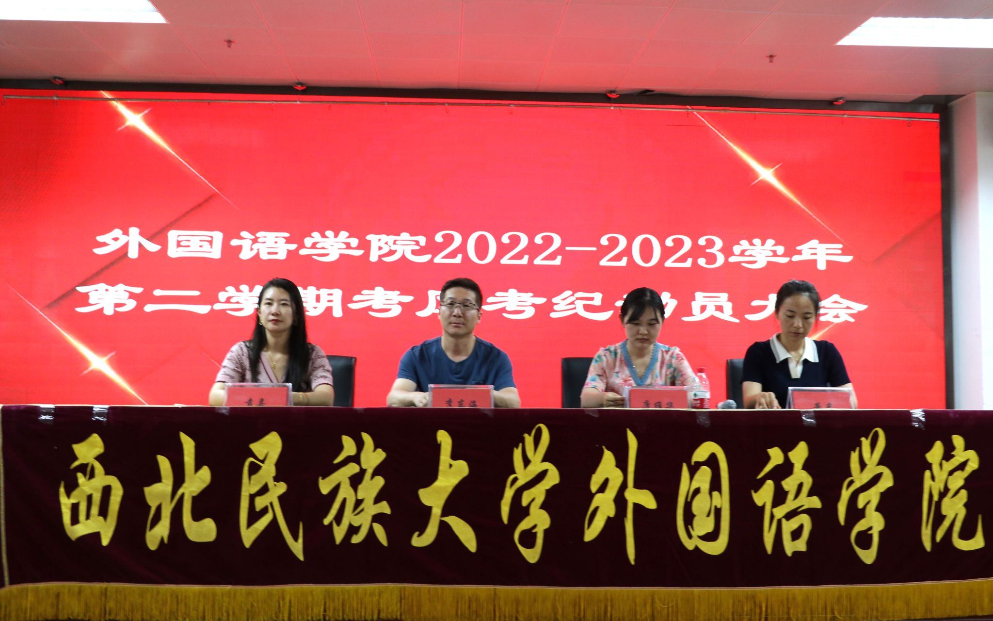 于2023年6月26日下午13:20在榆中校区就业大厅举行了2022-2023学年第二学期考风考纪动员大会。本次会议由团委副书记袁嘉主持,教学管理办公室主任李东海、辅导员康维华、辅导员董岩以及2022级全体学生参加了本次会议。