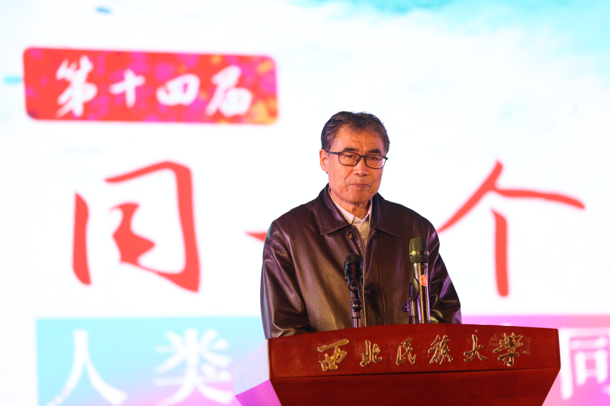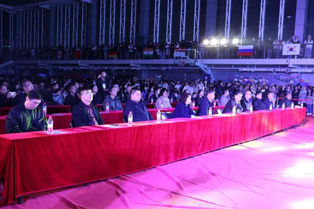 党委副书记、副校长玉苏甫江宣布第十四届“同一个世界”人类命运共同体主题文化艺术节正式开幕,国际文化街展示活动正式开启。这一刻,观众们报以最热烈的掌声和欢呼声。