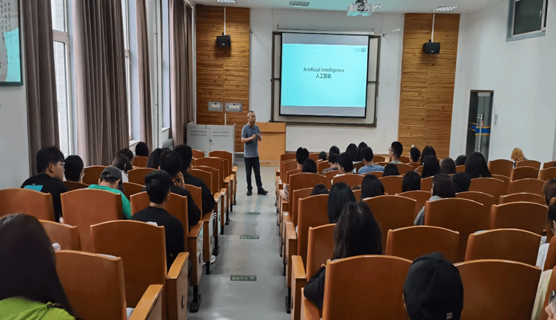 师建胜老师首先从人工智能的定义及要解决的核心问题入手,讲解了人工神经网络深层机制,接着对从生成式人工智能的定义、发展历程、技术架构体系、应用工程、关键组成部分、常见的技术场景、在不同行业的应用及局限等几个方面对生成式人工智能进行了层层剖析,着重介绍了检索性增强生成(RAG)以及生成式人工智能的发展趋势,最后聚焦翻译人才培养和生成式人工智能在实习实训中的应用。讲座结束后,师老师回答了同学们提出的问题。