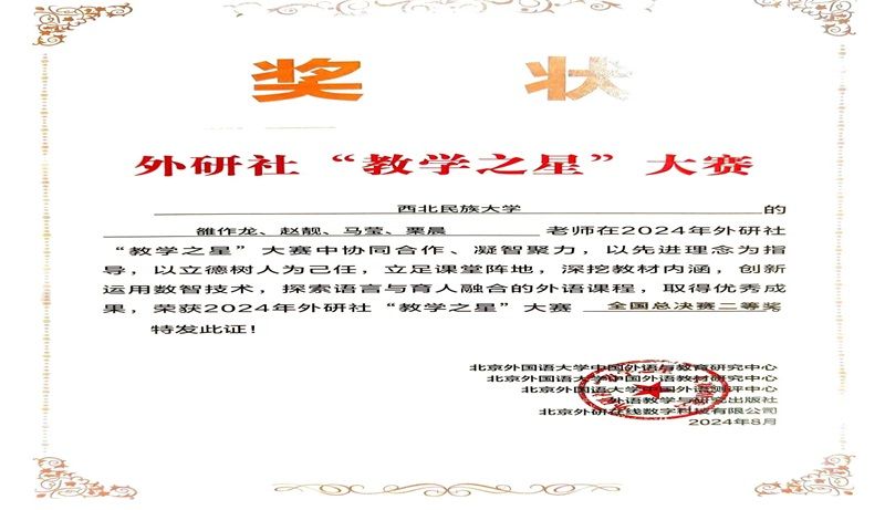 外研社“教学之星”大赛创办于2013年,是面向全国高校外语教师的大型公益赛事。大赛以专业水准、规范流程、科学评价为原则,受全国高校外语教育领域广泛认可,被连续列入中国高等教育学会“全国普通高校教师教学发展指数”。本次大赛,充分展示了数智融合的创新育人实践,实现了交流互鉴,并为推动教育创新、服务强国建设贡献新的力量。