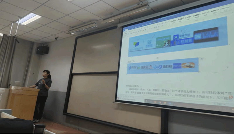 会后,张莉老师从AI提示词要点、智能体创建等方面对智谱清言Agent智能体作了使用和技巧分享,并推荐了其他智能体和英语学习助手。在张莉老师分享完之后,全体老师继续在各系和教研室负责人的组织下,以课程组为单位说课,磨课。
