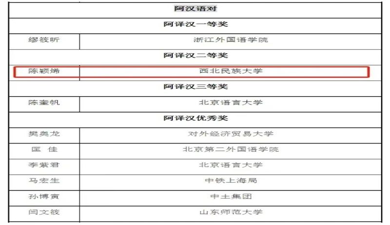 学子积极响应并参与了第三十六届韩素音国际翻译大赛。近日,大赛获奖名单揭晓,来自2021级阿拉伯语1班的陈颖烯同学在阿译汉组中荣获二等奖。