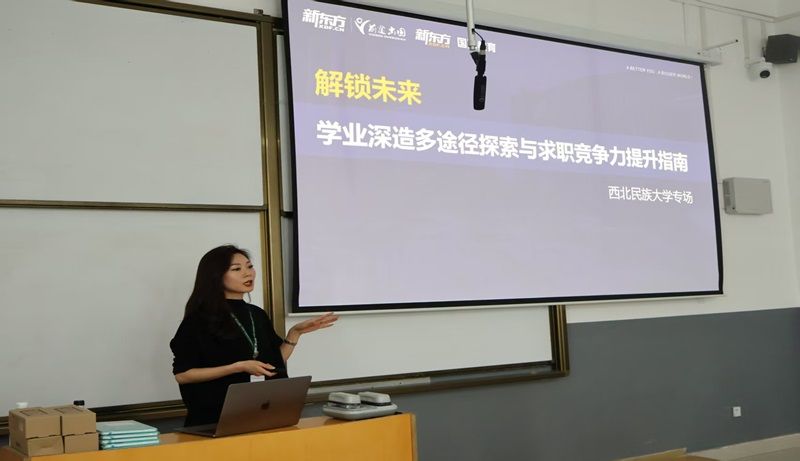 与新东方兰州分公司在致真楼107室联合举办了留学政策宣讲会,活动吸引了众多学生参加。