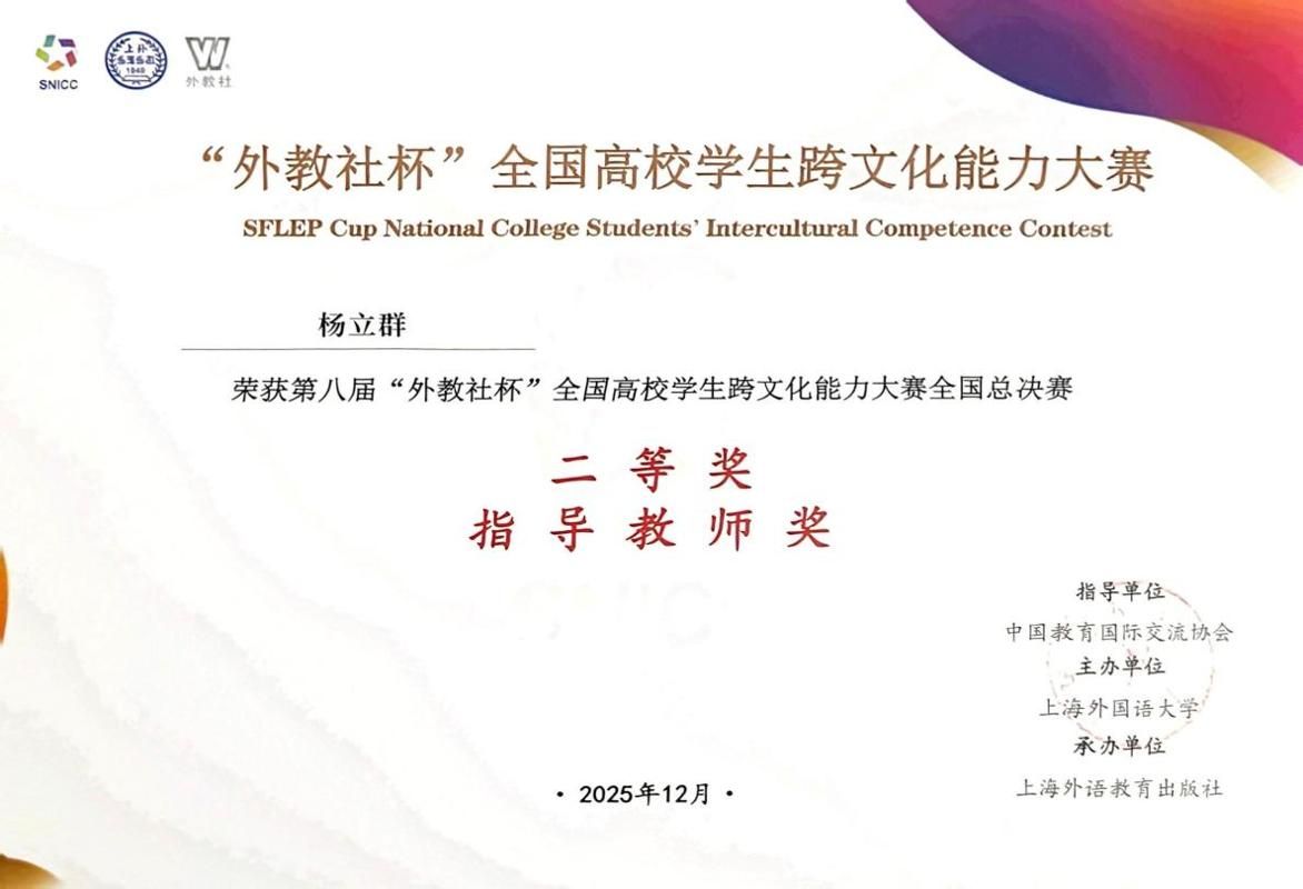 近日,第八届“外教社杯”全国高校学生跨文化能力大赛全国决赛总决赛在上海举行。经过激烈角逐,红黑游戏 外国语红黑游戏 参赛团队表现优异,在本次比赛中荣获二等奖,红黑游戏 获得优秀组织奖。
