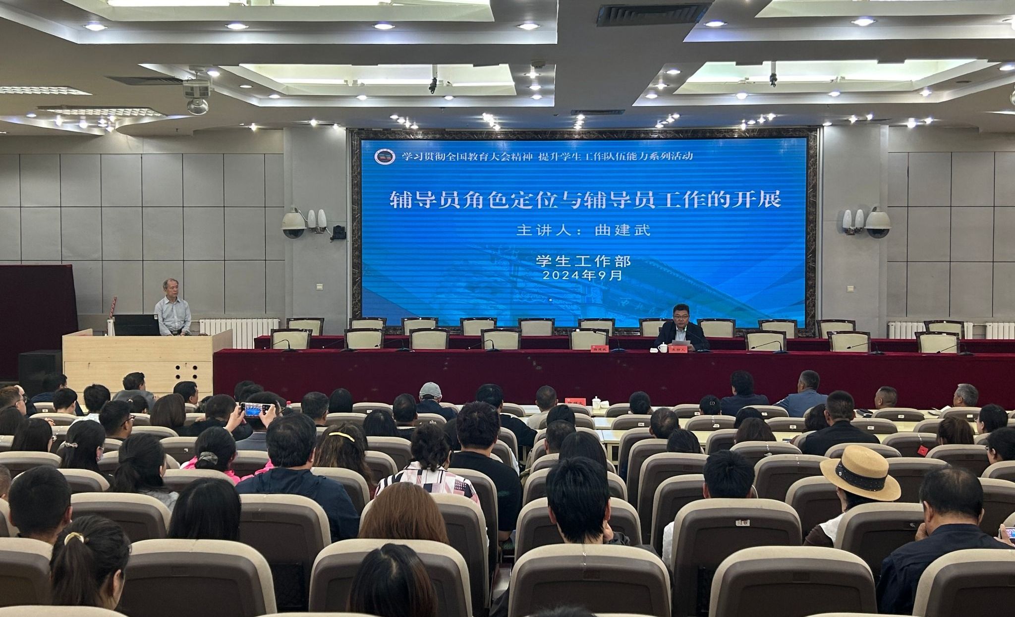9月23日,“时代楷模”曲建武教授来校作《辅导员角色定位与辅导员工作��开展》的专题报告。学校辅导员、班导师代表近300人参加报告会。��委常委、副校长徐绍文主持并讲话。