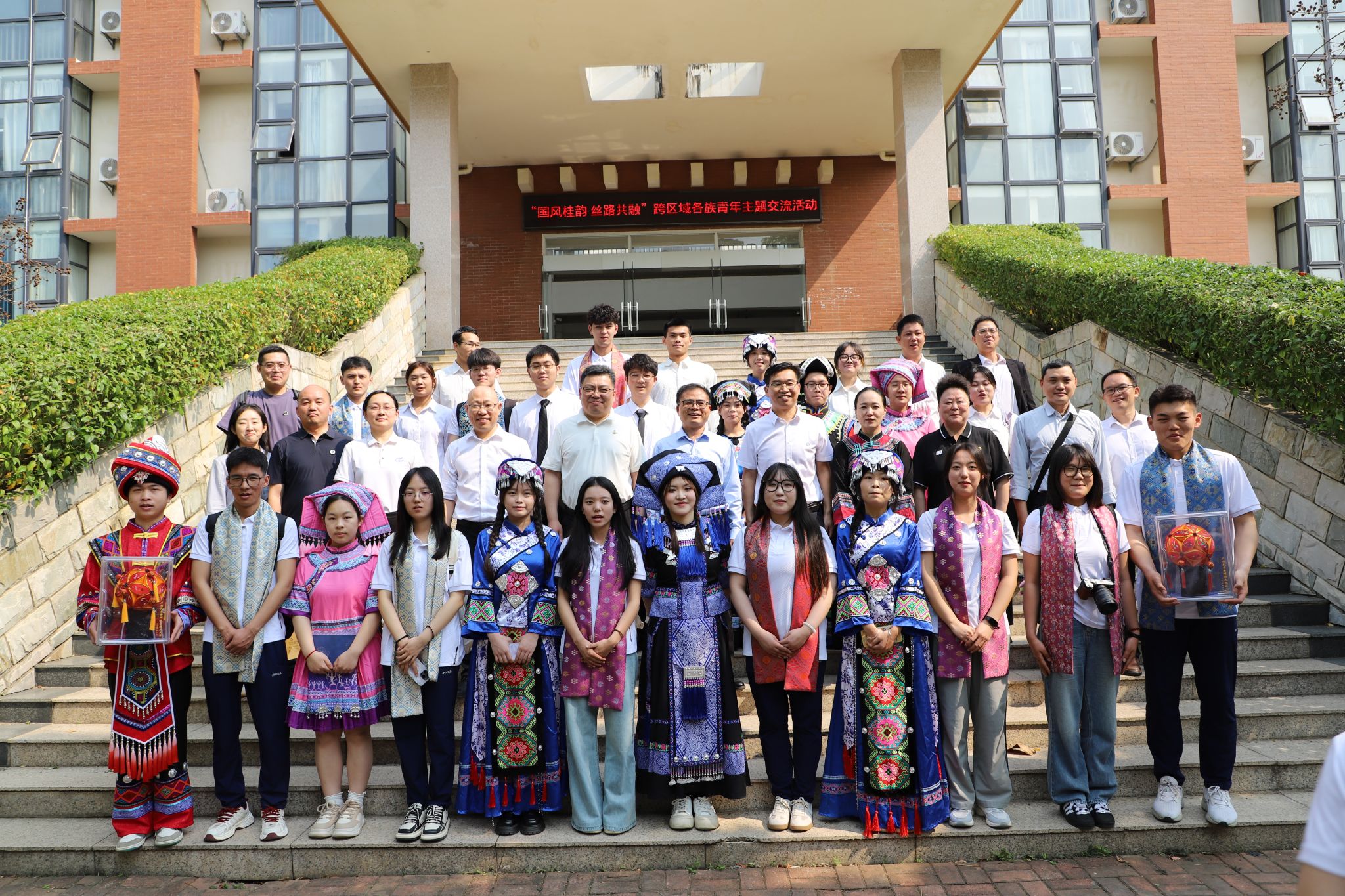 3月26至29日,学校领导应邀带领优秀辅导员代表和获得校长特别奖、国家奖学金、国家���志奖学金学生代表13人赴广西桂林理工大学参加“国风桂韵 丝路共融”跨区域各族青年主题交流活动。广西民宗委、桂林理工大领导出席活动。