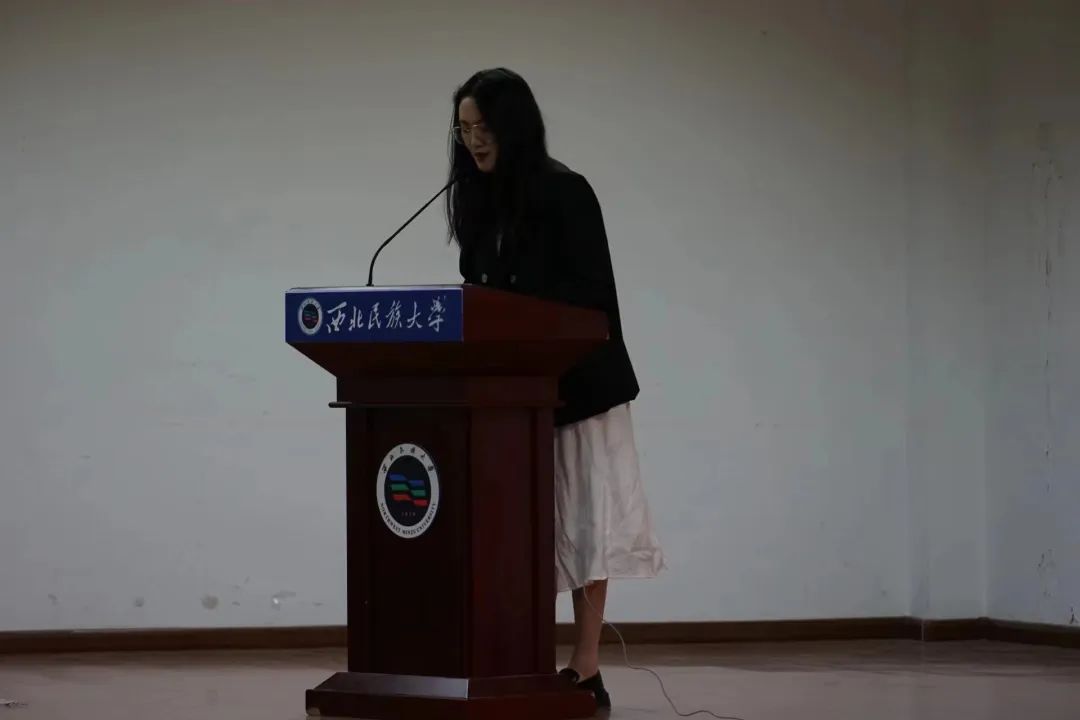 优秀毕业生、2019级广播电视编导专业马念同学代表受奖励同学发言,她表示要继续努力学习,勤学善思,马念鼓励学弟学妹要心怀大我,自信自强,用智慧擦亮青春底色,用行动彰显青春英姿。
