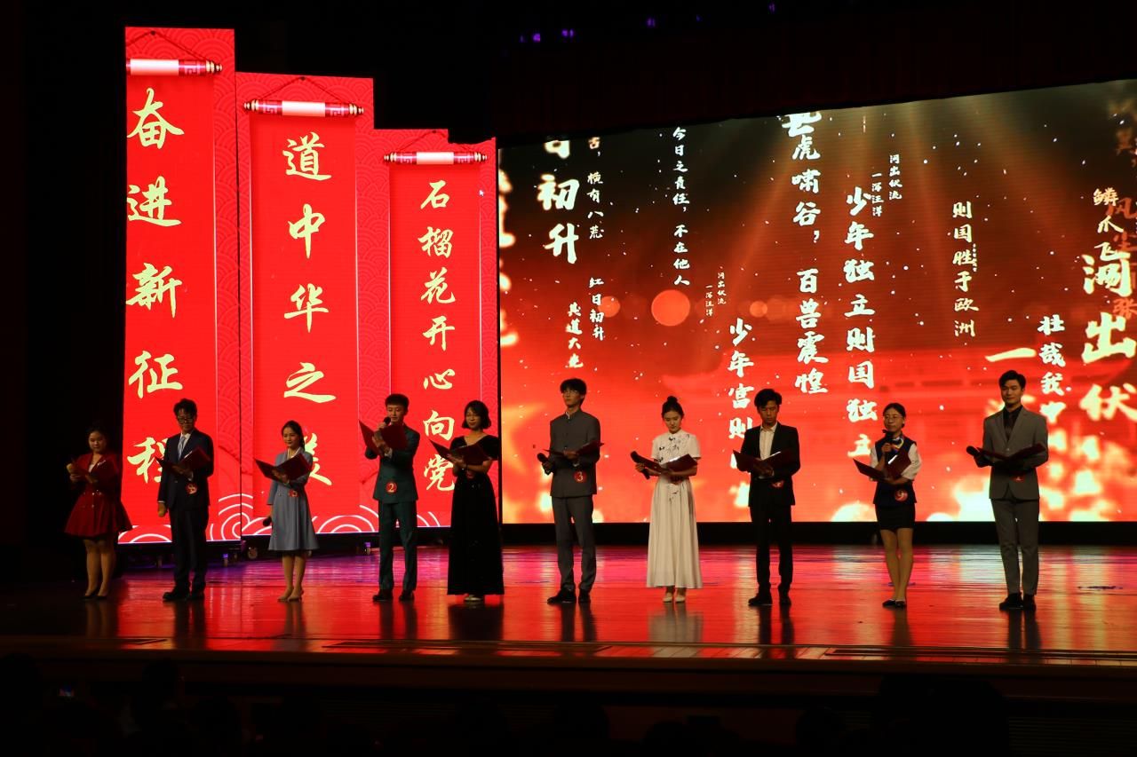 比赛在集体朗诵《少年中国说》中拉开序幕,10名大学生选手豪情满怀、慷慨激昂,用真诚的语调、昂扬的激情、温婉的情愫讴歌了党的丰功伟绩,表达了当代青年学生爱党爱国之情。