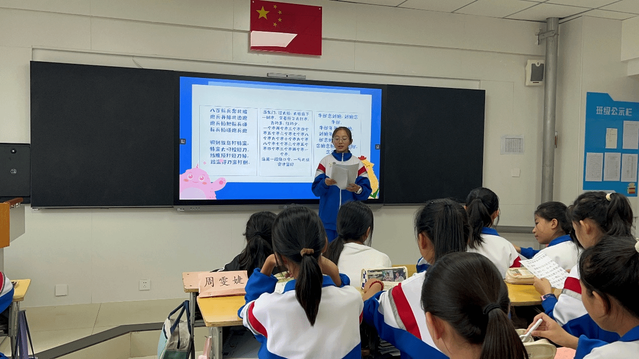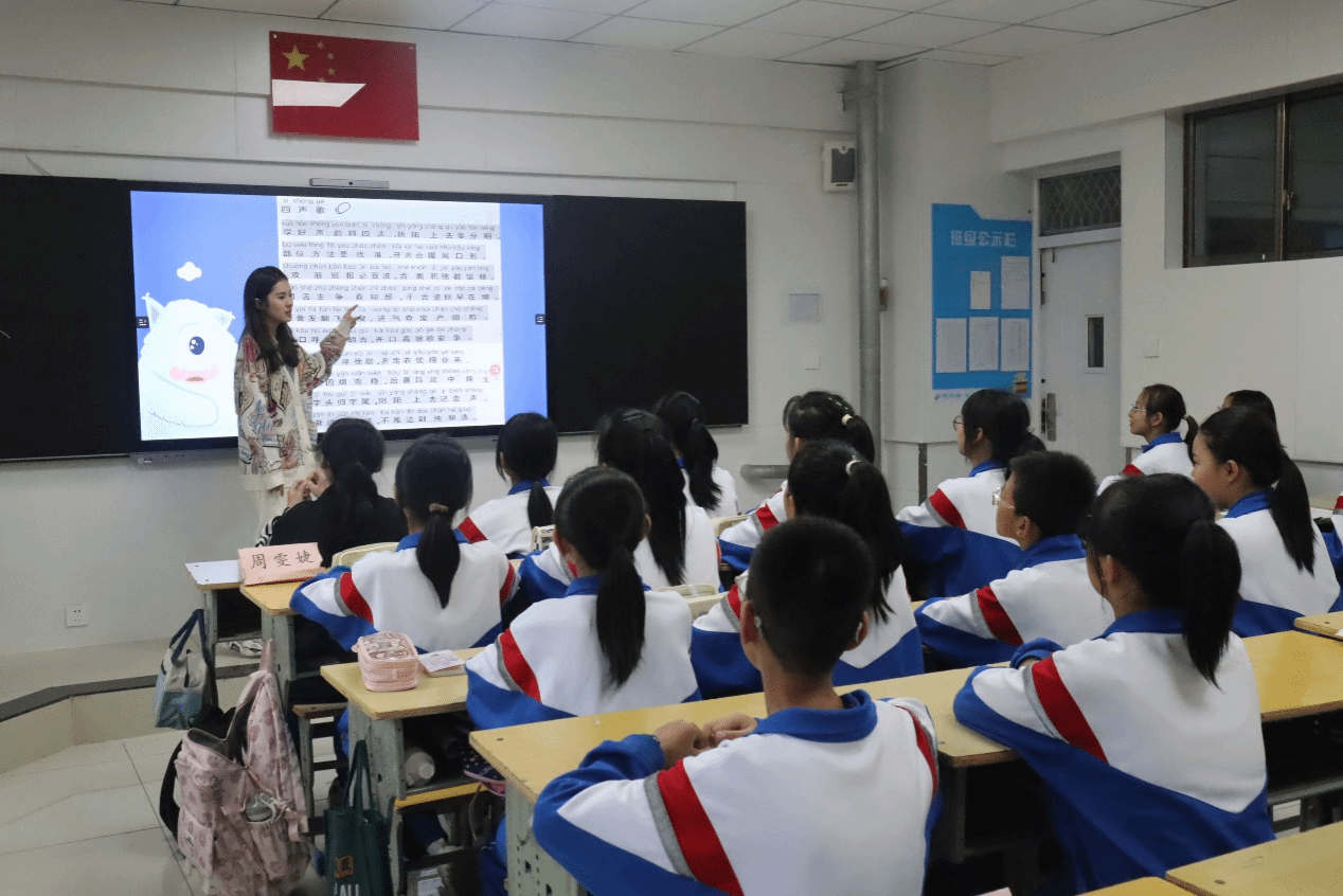 王思雨和周俊成负责播音社团的教学工作,课程紧紧围绕铸牢中华民族共同体意识,以推广国家通用语言文字为纽带,通过古诗文诵读、红色歌曲传唱、字音辨读、绕口令、歇后语等形式,倡导规范书写、规范普通话发音,带领附属中学学生感受语言文字的魅力,弘扬中华优秀传统文化,讲好中国好故事。
