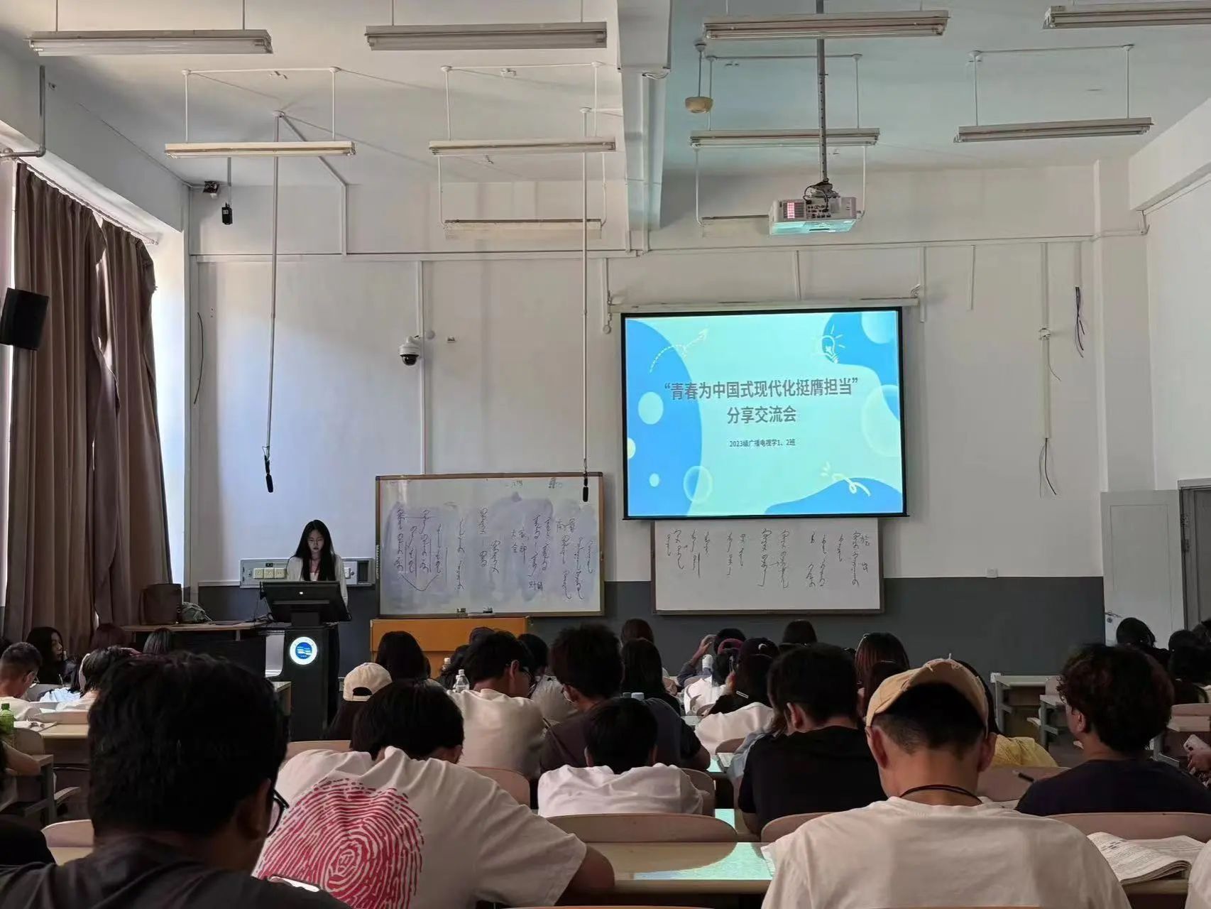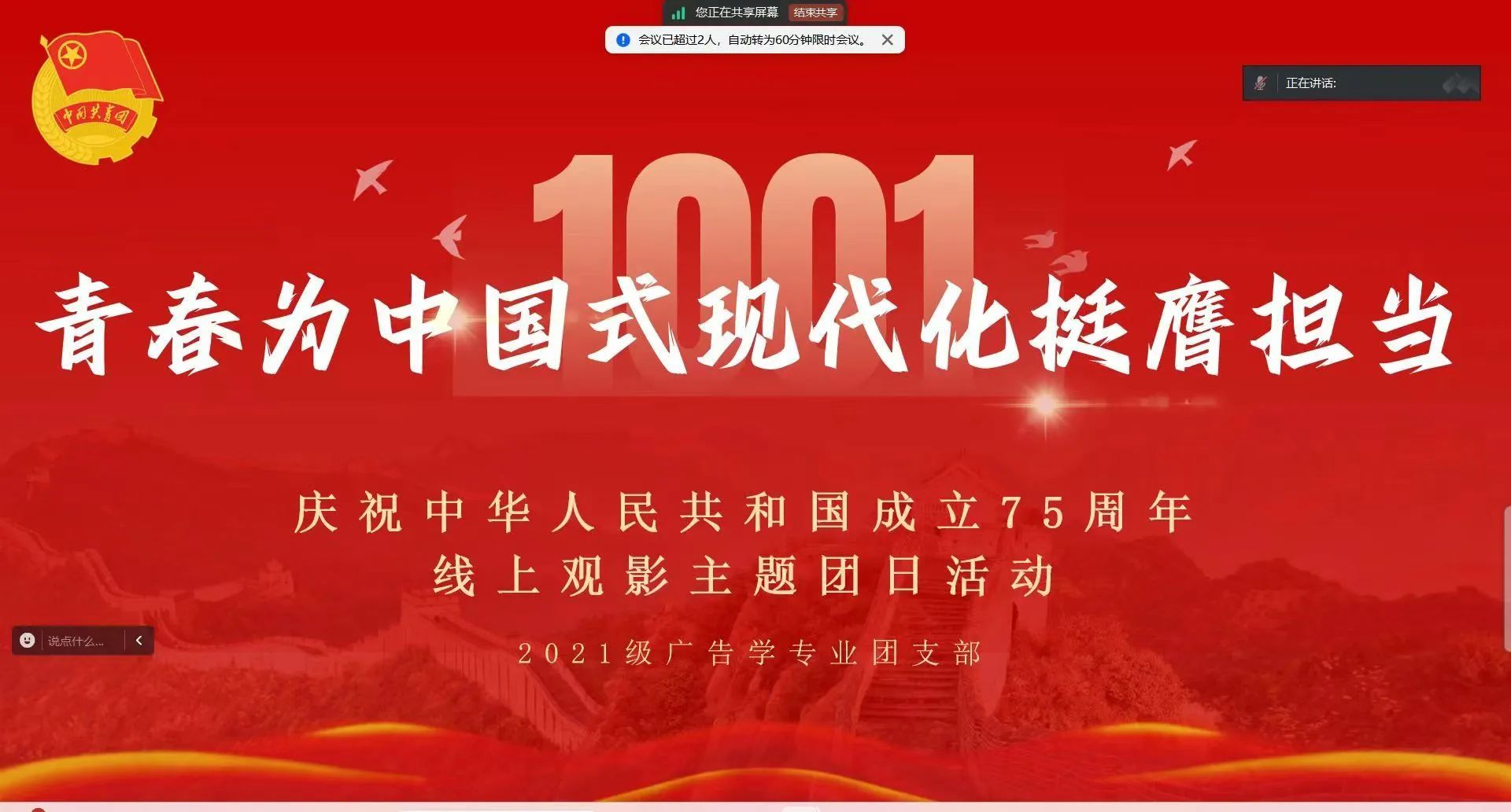 各团支部通过学习习近平总书记在全国民族团结进步表彰大会上的重要讲话、共看一部爱国电影、做志愿服务活动、开展分享交流会等形式,开展丰富多彩的活动,表达对祖国的热爱和对中国式现代化的向往。