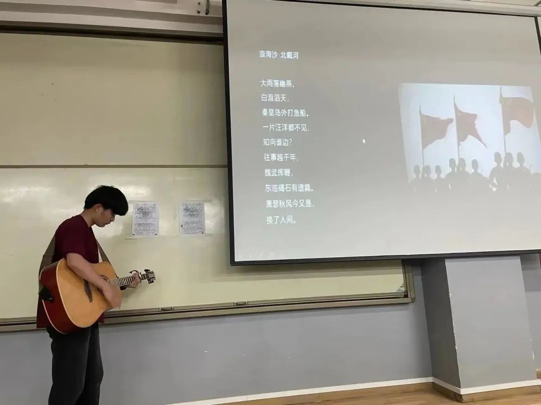 的霍怀礼同学将延安故事写成诗,用吉他弹唱延安的旋律。