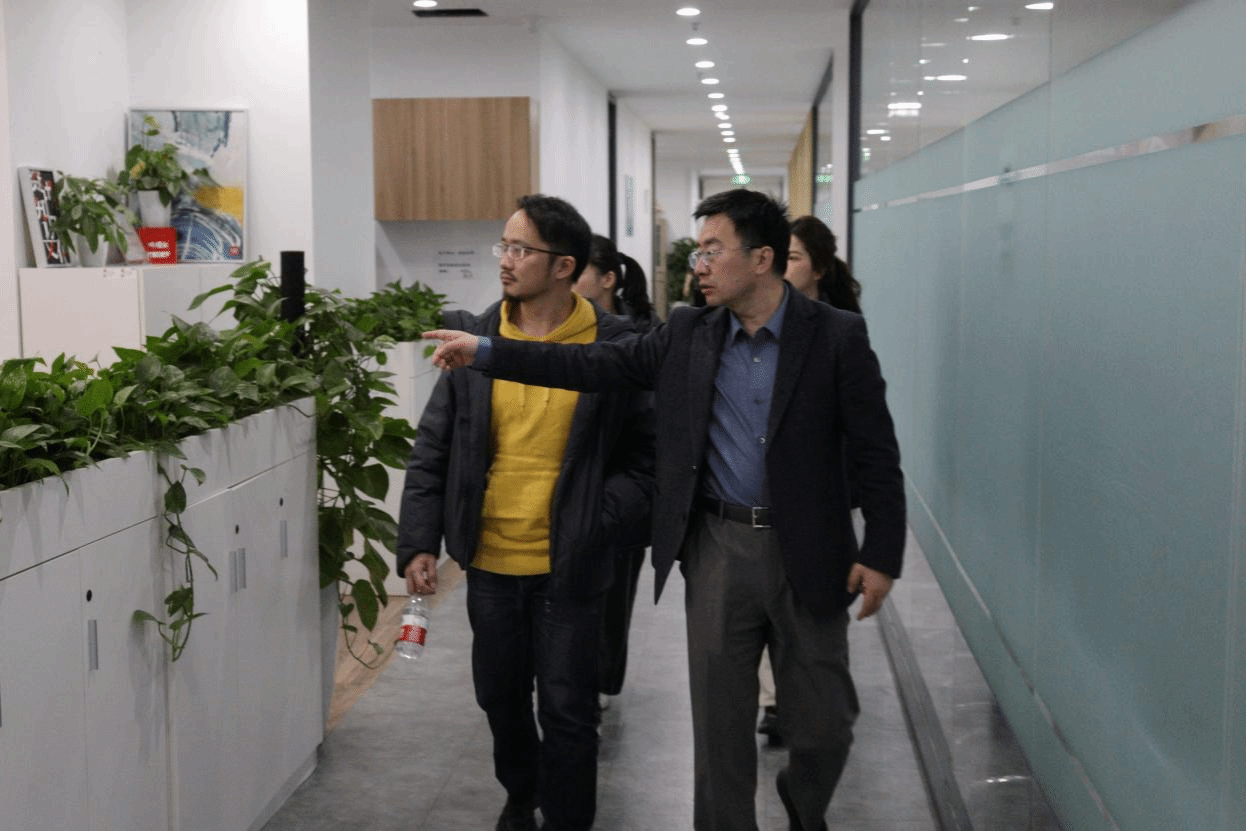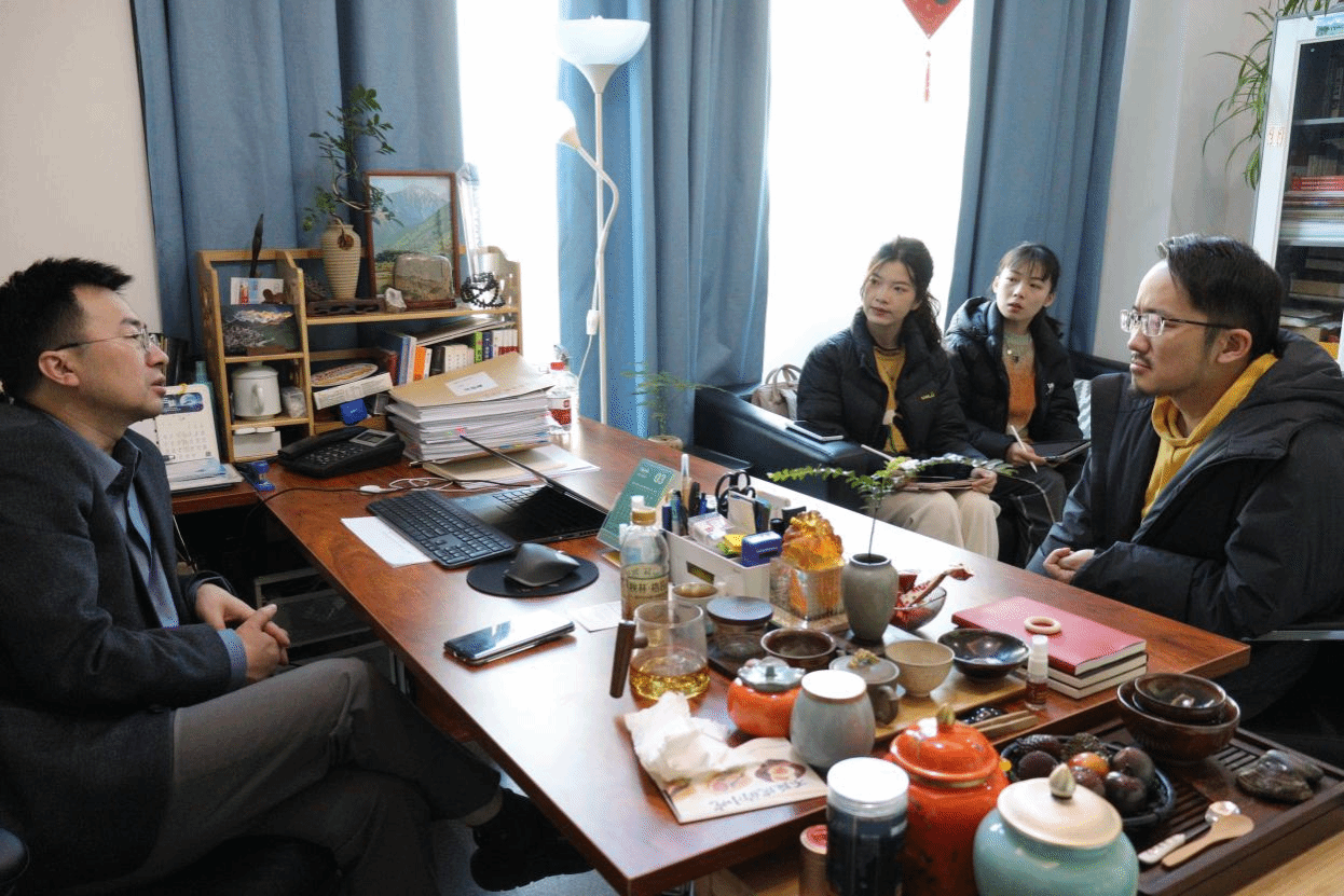 (云听总编辑张显峰与实践团队在办公室内交流)