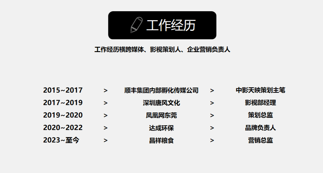 工作经历横跨媒体、影视策划人、企业营销负责人