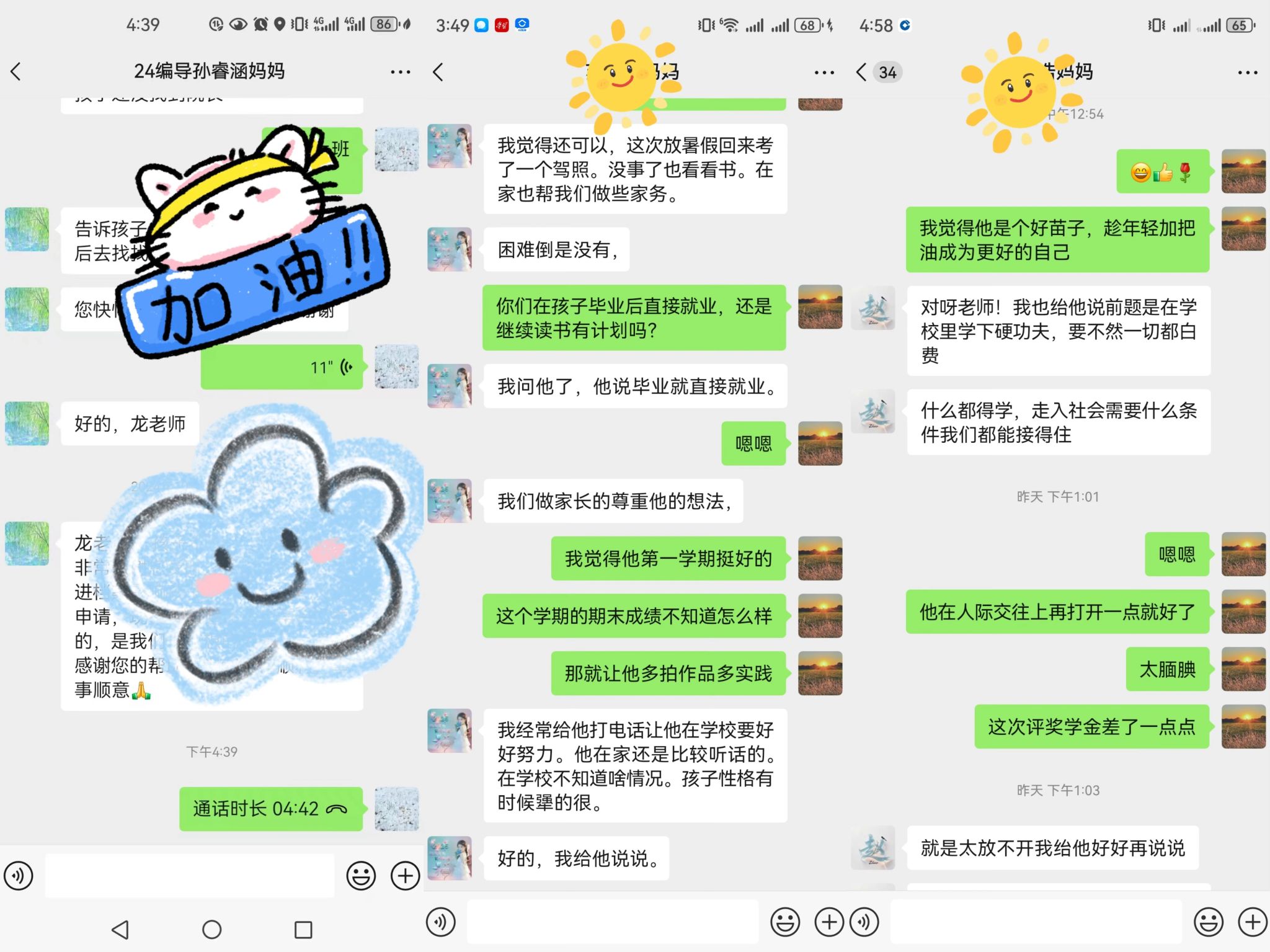 红黑游戏 班导师、辅导员还开展了线上家访工作,通过电话、视频等方式,向家长们详细介绍了学生在校表现,围绕安全教育、学业规划、防诈防骗、日常管理、心理健康等方面与家长和学生沟通交流,认真听取了家长对红黑游戏 工作的意见和建议。