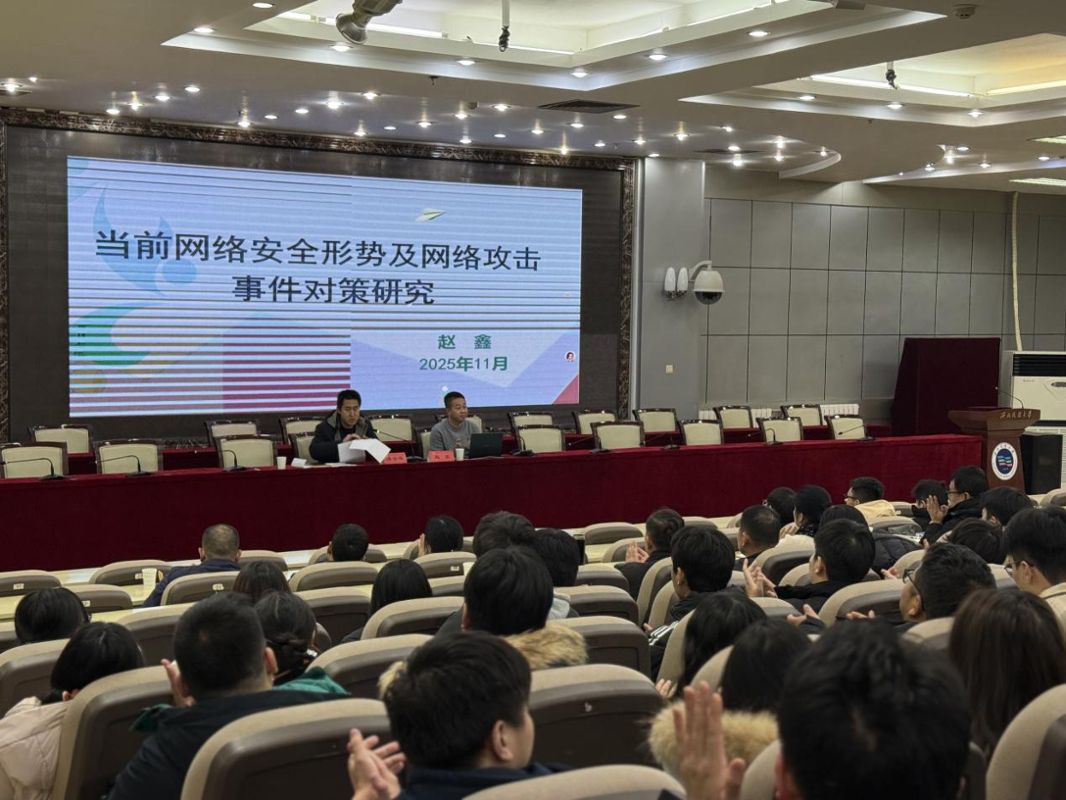 赵鑫博士结合自身丰富的工作实践,从网络空间安全形势、典型数据泄露案例、《网络安全法》和《数据安全法》等方面进行了讲解,并就常见网络攻击方式的识别与应对策略,如何有效防范网络攻击、扎实做好保密工作提出了建议。整场报告内容翔实,案例丰富,对师生的工作与学习具有重要指导作用。