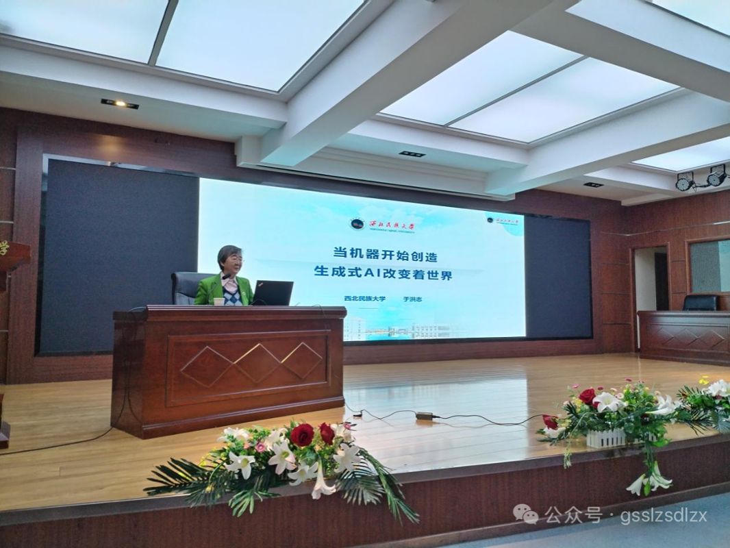 2025年11月20日,中国民族信息技术研究院于洪志教授走进兰州六中,为全校师生带来了一场题为《当机器开始创造:生成式AI改变着世界》的科普讲座。报告深入浅出地介绍了生成式人工智能的核心原理与发展现状,并聚焦探讨了这项技术将如何深刻影响学生的学习方式与教师的职业未来。