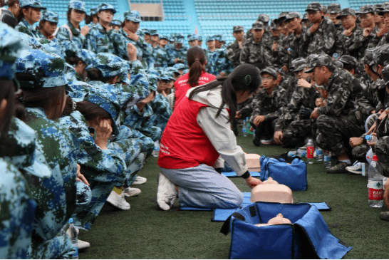 医院医护人员共50余人负责技能操作。活动分为理论讲授和实际操作两个环节。在理论讲授环节,专业讲师通过生动的案例和深入浅出的讲解方式,详细介绍了心肺复苏(CPR)、自动体外除颤器(AED)的使用、海姆立克急救法、创伤救护等急救基础理论知识。同时,还强调急救的“黄金四分钟”原则,让参训学生深刻认识到在紧急情况下迅速行动救护的重要性。在实操演练环节,分组开展示范操作,手把手帮教,学生亲自动手进行心肺复苏实操练习。培训现场,参训学生踊跃参与,气氛十分活跃。