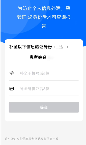第五步:根据提示二选一(手机号或身份证号后6位),提交。