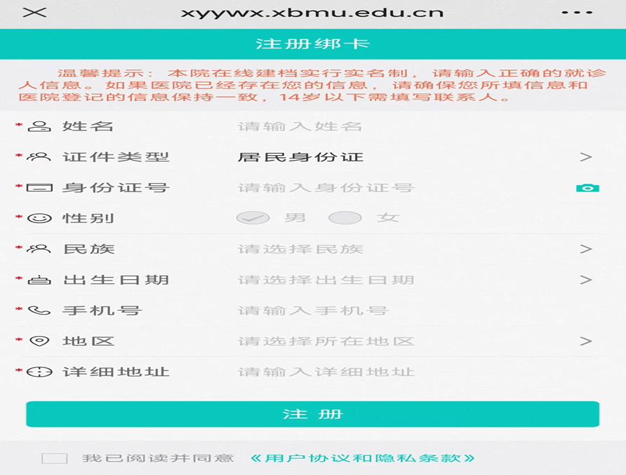 第二步:右下角选择“我的信息”进行注册,注册成功,返回进入主页。