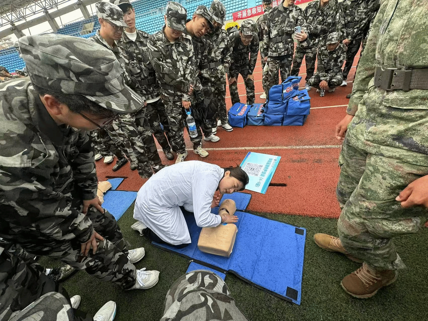 理论学习后,医院在榆中校区开展了2024级新生急救技能培训。现场进行了理论讲解和心肺复苏实操演练,同学们在医护人员的带领下,分组进行演练学习,现场气氛热烈而有序,营造了“人人学急救 急救为人人”的浓厚氛围