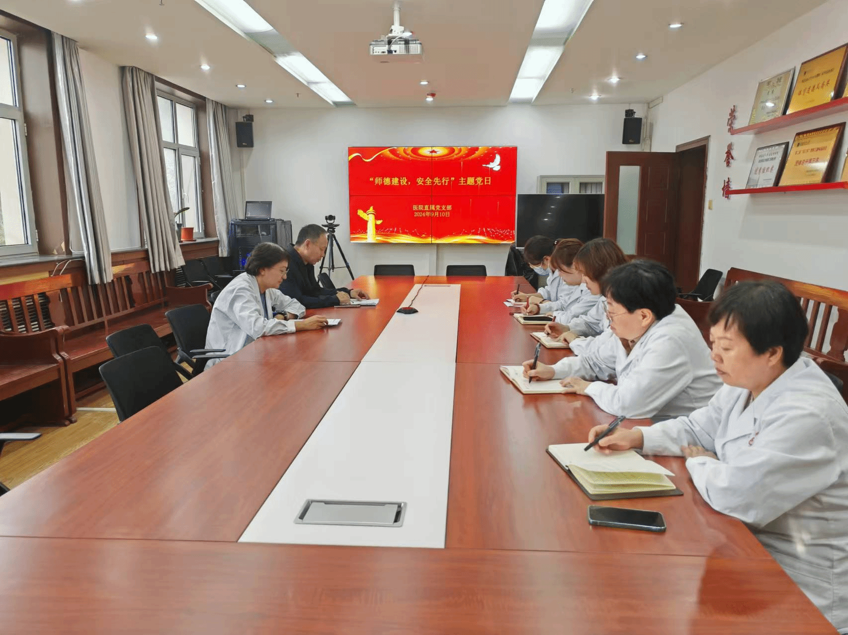 首先全体党员集中学习习近平总书记重要讲话精神—《习近平:培养德智体美劳全面发展的社会主义建设者和接班人》,李宝明领学“学习贯彻党的二十届三中全会精神 | 深化教育综合改革”,结合《中共中央 国务院关于弘扬教育家精神加强新时代高素质专业化教师队伍建设的意见》,要求医院全体教师模范遵守宪法和法律法规,依法履行教师职责,模范遵守新时代教师职业行为准则,自觉捍卫教师职业尊严。