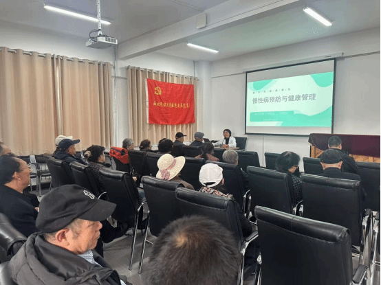 医院医务人员为老同志提供血糖、血压测量、乙肝表面抗体检测等服务,对老同志们提出的健康问题耐心解答,并给出专业的治疗方法和建议。随后,医院院长刘丽江作题为“慢性病预防与健康管理”健康科普讲座,围绕慢性病成因与流行病学、慢性病的症状及治疗、慢性病的健康管理等方面进行了详细讲解。通过理论知识与实际案例相结合的方式,向大家重点普及了老年群体慢性病防治的意义,强调大家一定要注意均衡饮食、适量运动、注意生活细节,保持身体健康。同时,创造了老年人交往交流交融的机会,营造出民族团结进步的浓厚氛围。